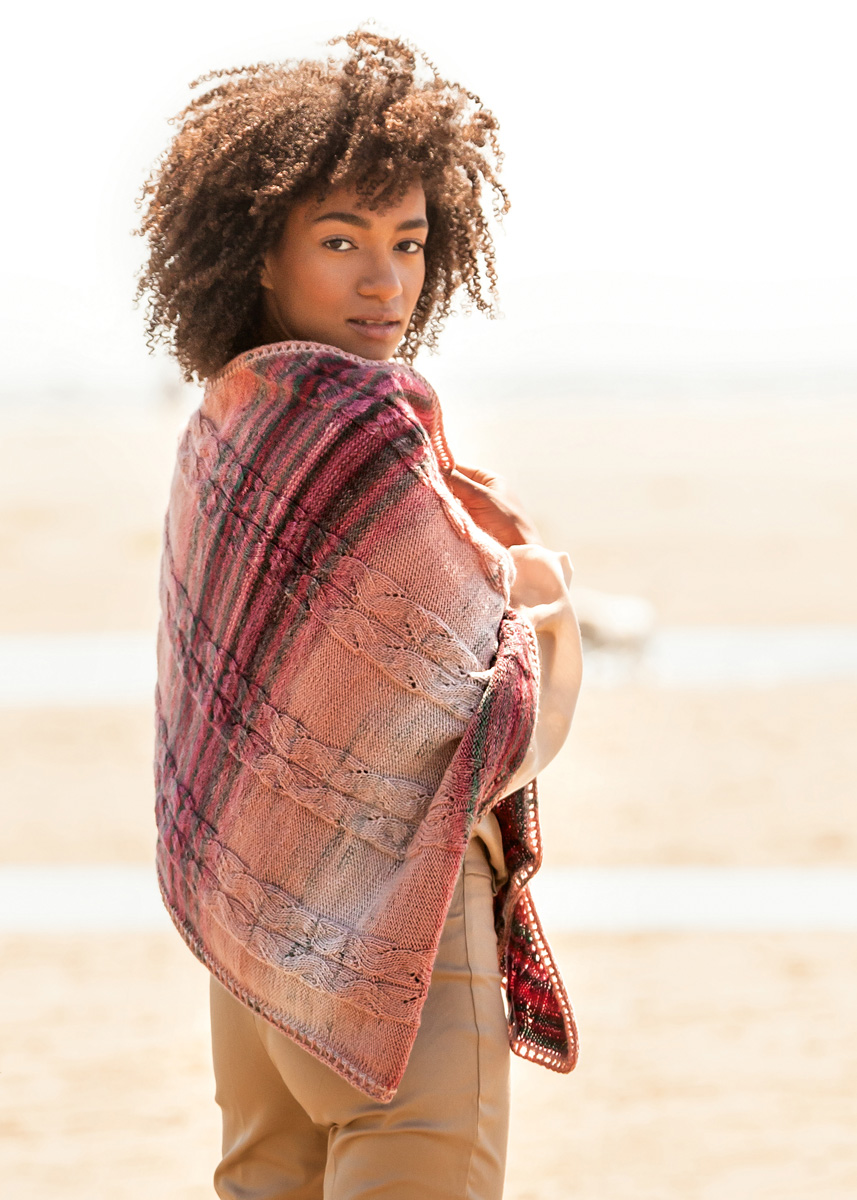 400 g of Lana Grossa Gomitolo Finito (100% Merino wool; 520 m/200 g) in Pink/Pale Pink/Dark Green/ Blackberry (col 553). Size 4.5 mm circular needle, 80 cm long; size 3.5 mm crochet hook