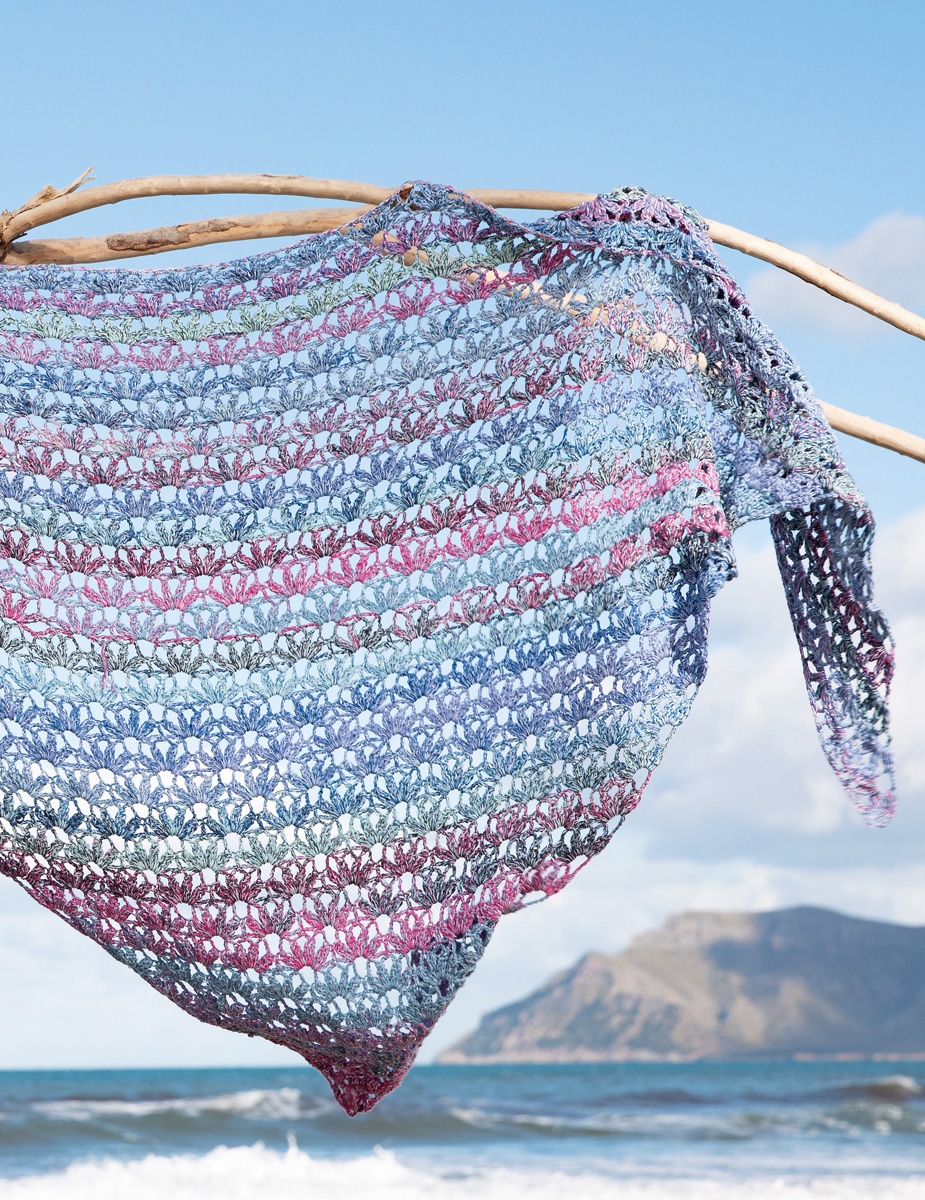 300 g of Lana Grossa Gomitolo Summer Tweed (72% cotton, 20% viscose, 8% polyamide; 400 m/100 g) in Lilac/Royal/Marine/Pink/Grey/Charcoal/Cyclamen (col 7). Size 4 mm crochet hook