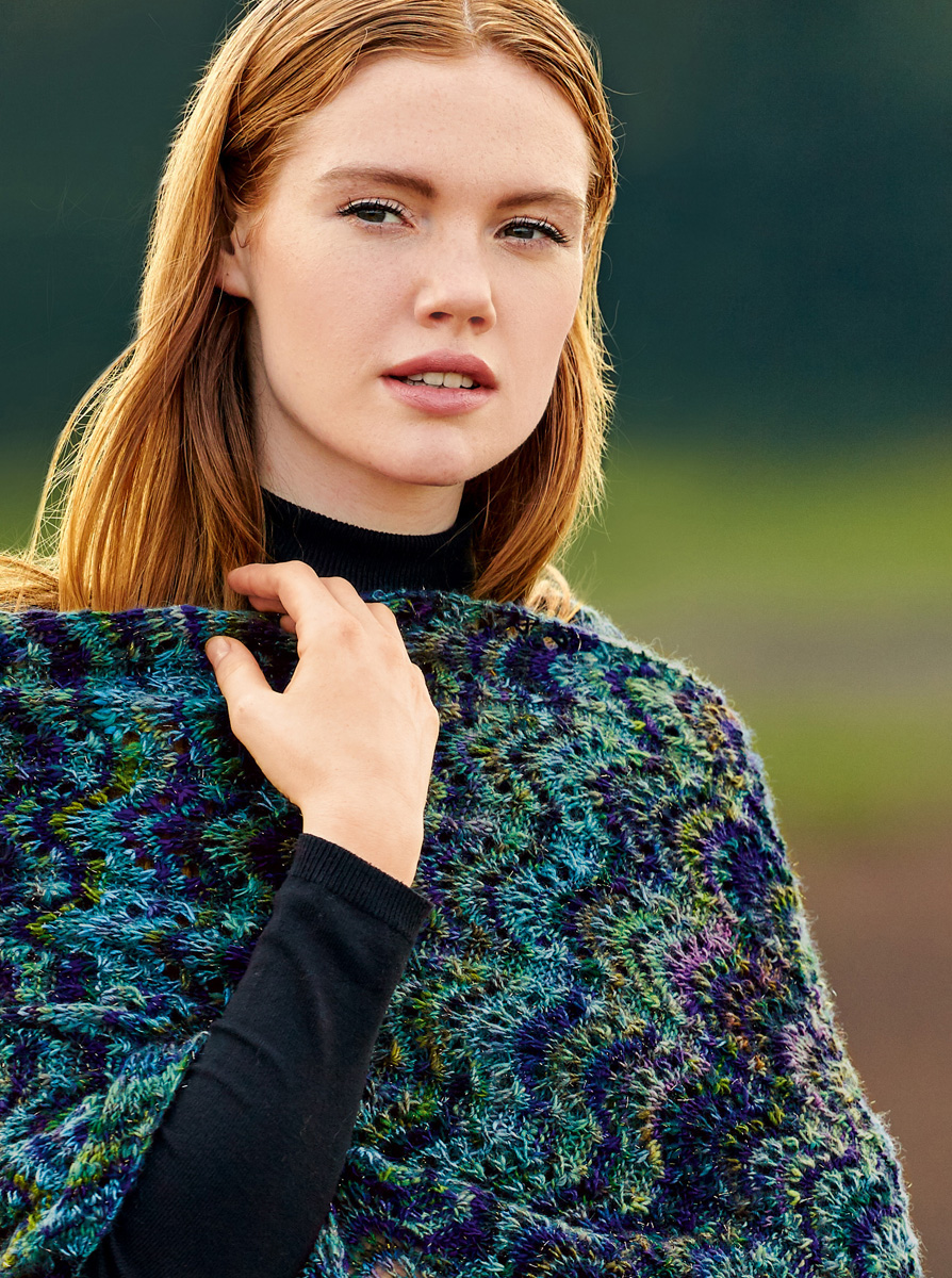 400 g of Lana Grossa Lucia (50% acrylic, 40% Merino wool, 9% polyamide, 1% polyester; 280 m/100 g) in Pine/Moss/Petrol/Turquoise/Dark Blue (col 208). Size 4 mm needles