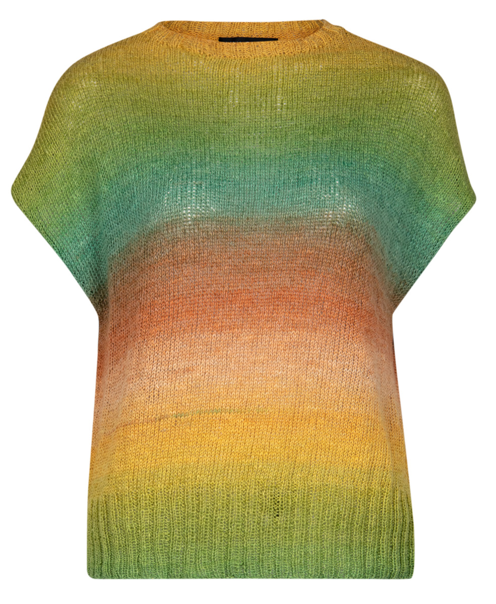 300 (300, 400) g of Lana Grossa Mare (46% linen, 33% silk, 21% cotton; 330 m/100 g) in Light Olive/ Mustard/Sun Yellow/Peach/Powder Brown/Terracotta/Jade (col 9). Size 3 and 3.5 mm needles; size 3 mm circular needle, 50 cm long
