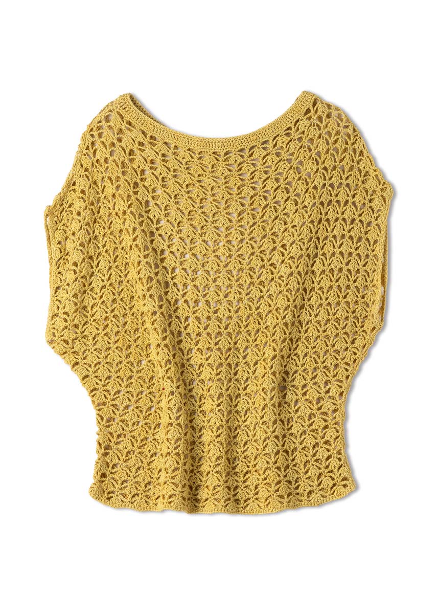350 (400) g of Lana Grossa Solo Lino (80% recycled linen [viscose], 20% linen; 120 m/50 g) in Bright Yellow (col 73). Size 3.5 mm crochet hook.