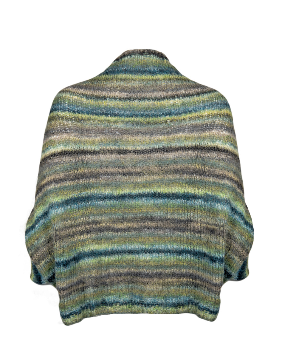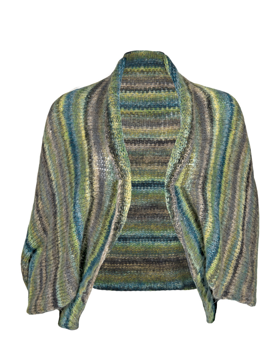 200 (200, 300) g of Lana Grossa Tutti (25% mohair, 25% alpaca, 30% polyamide, 20% pure wool; 330 m/100 g) in Petrol Green/Natural/Beige/Midnight/Grey-Brown (col 8). Size 5 mm needles