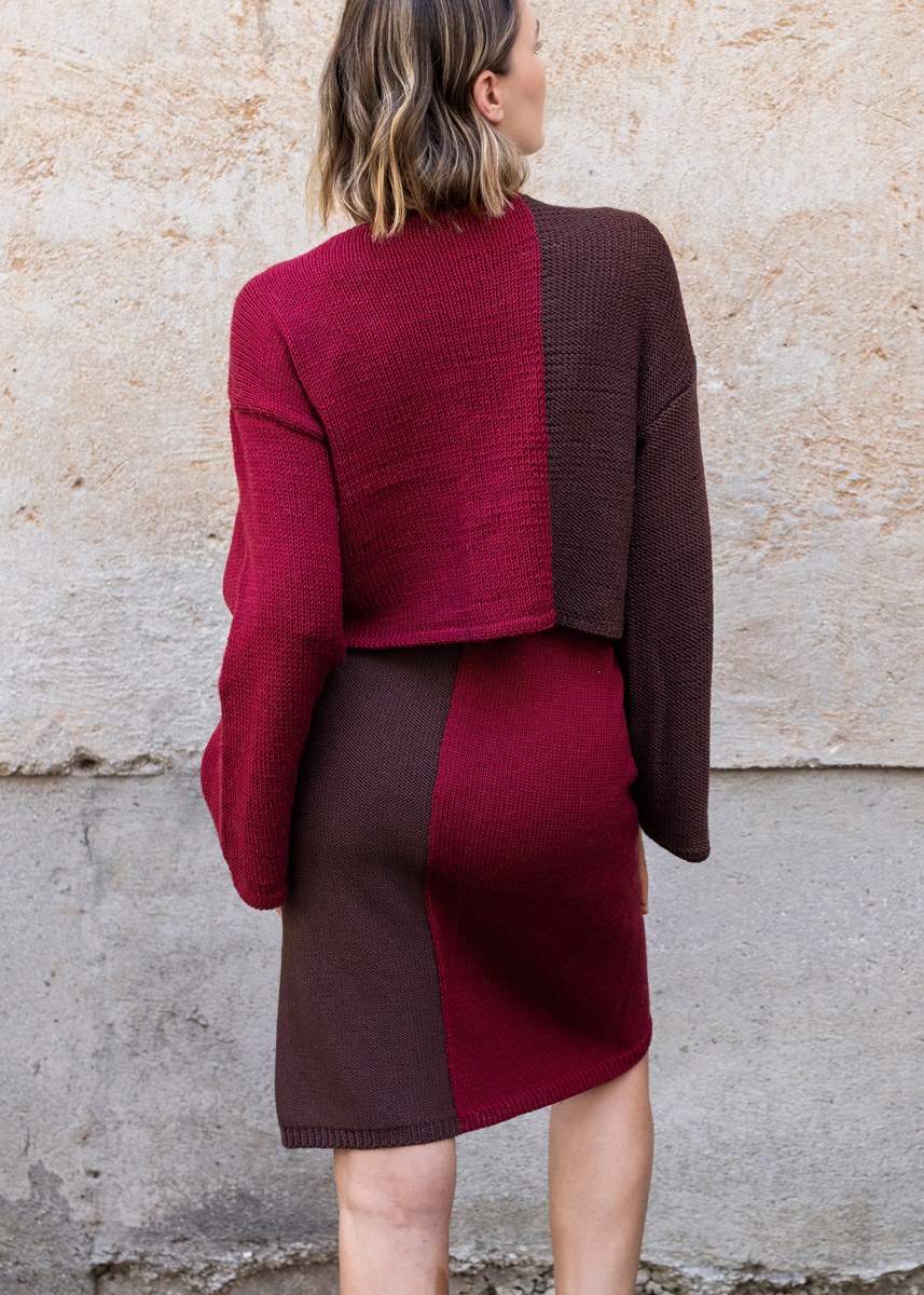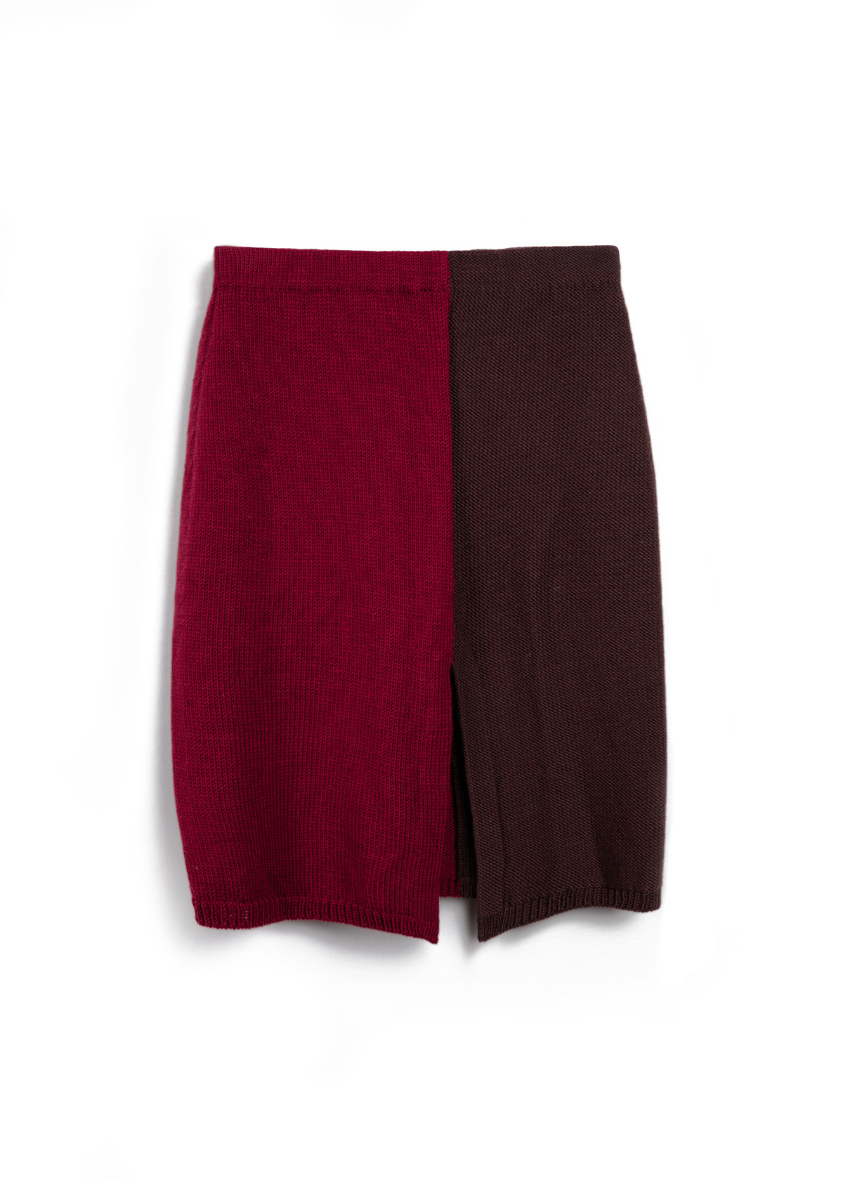 The skirt has a total length of 58 (60 - 62 - 64 - 68 - 68) cm, a waist circumference of 62 (70 - 78 - 86 - 98 - 110) cm and a hip circumference of 87 (94 - 102 - 110 - 122 - 134) cm. It is knitted bottom up in rows and the seam is closed alongside the slit.
