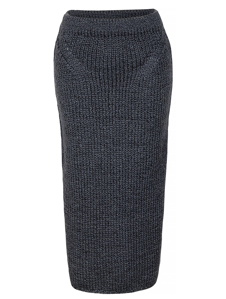 550 (600) g of Lana Grossa Lala Berlin Chunky (80% Merino wool, 15% silk, 5% polyamide; 50 m/50 g) in Charcoal (col 11). Size 8 mm needles; size 6 and 8 mm circular needles, each 60 cm long; waistband elastic, approx. 70 (80) cm long and 1 cm wide