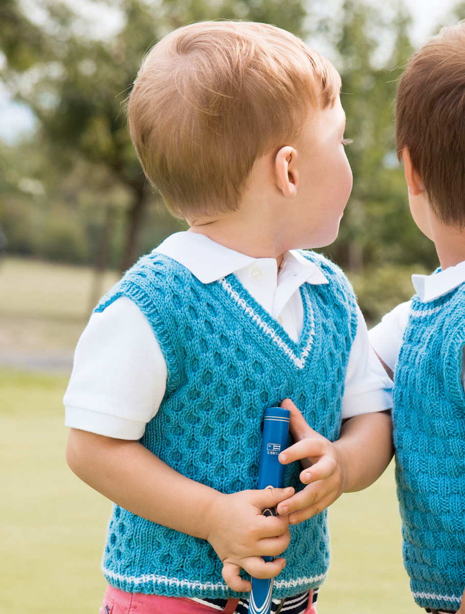 100 (150, 150, 150) g of Lana Grossa Cool Wool (100% pure wool; 160 m/50 g) in Mint Blue (col 2048) and 50 g in White (col 431). Size 3.5 mm needles; size 3.5 mm circular needle, 40 cm long; cable needle [cn]