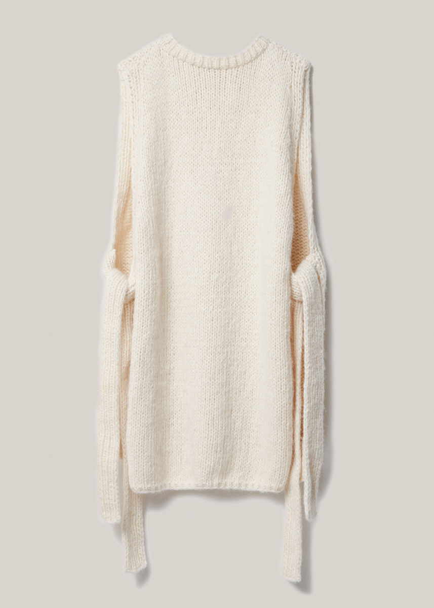 500 (550) g of Lana Grossa Natural Alpaca Pelo (63% cotton, 31% baby alpaca, 6% Merino wool; 125 m/50 g) in Off White (col 1). Size 5 and 8 mm needles; size 5 mm circular needle, 40 cm long.