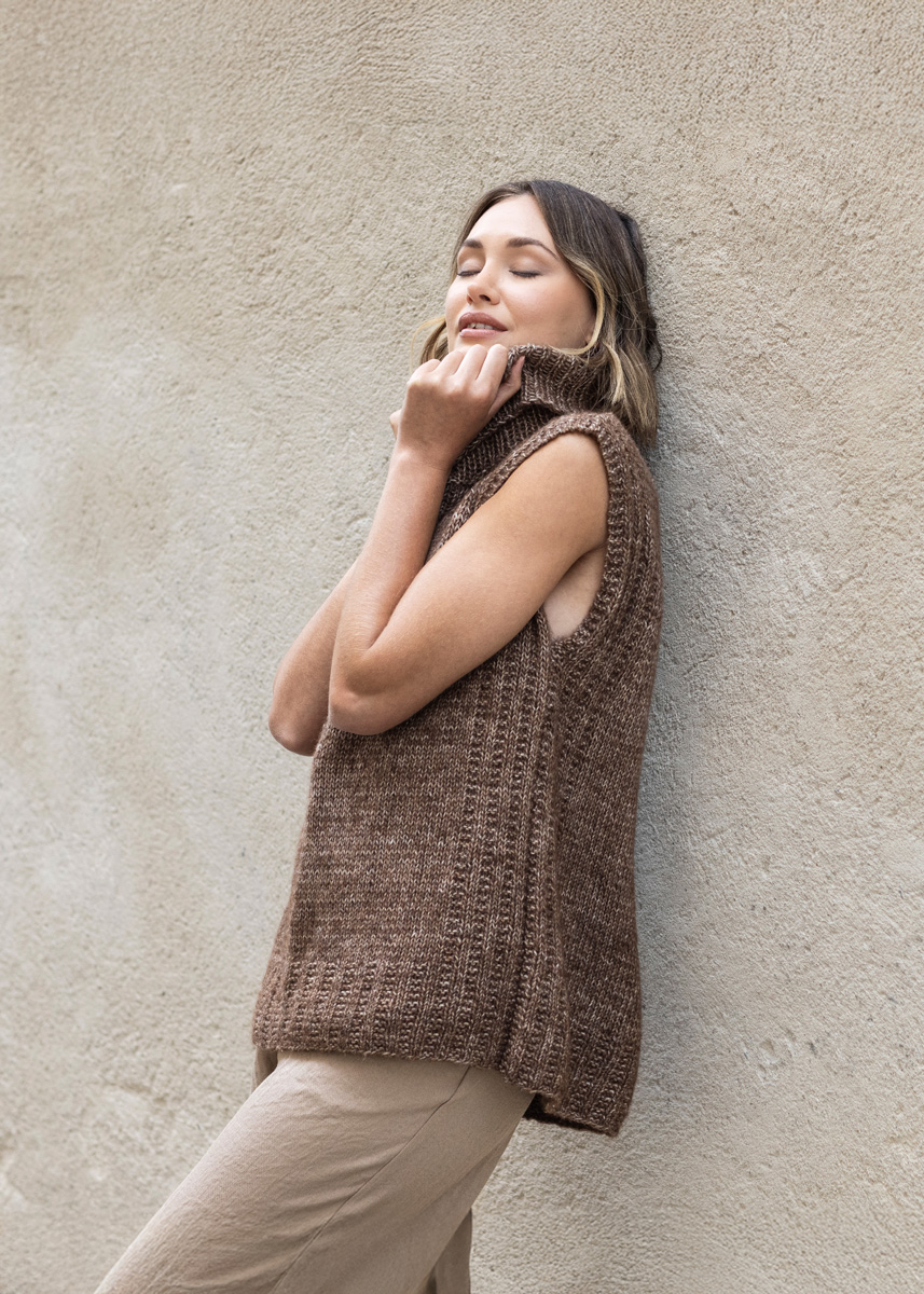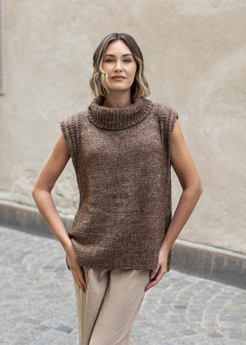 The slipover has a total length of 60 (62 - 64 - 66 - 68 - 70) cm and a positive ease of 36 cm at 80 cm bust circumference (32 cm at 88 cm bust circumference - 28 cm at 96 cm bust circumference - 26 cm at 104 cm bust circumference - 18 cm at 116 cm bust circumference - 12 cm at 128 cm bust circumference).