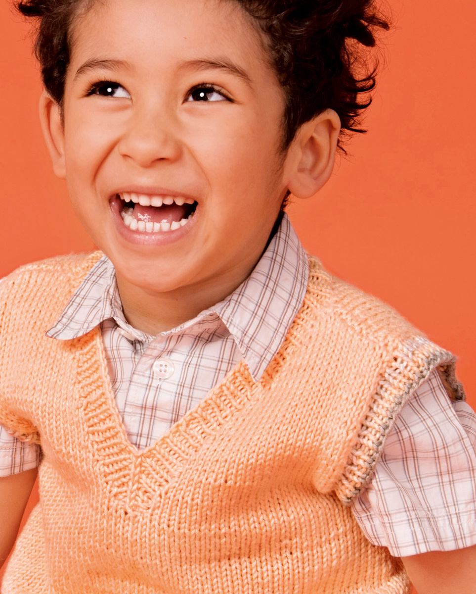 50 (100, 100) g of Lana Grossa Soft Cotton (70% cotton, 30% microfiber; 140 m/50 g) in Apricot (col 1) and 50 g each in Greige (col 3) and Green/Grey (col 4). Size 3.5 mm needles; size 3.5 mm circular needle