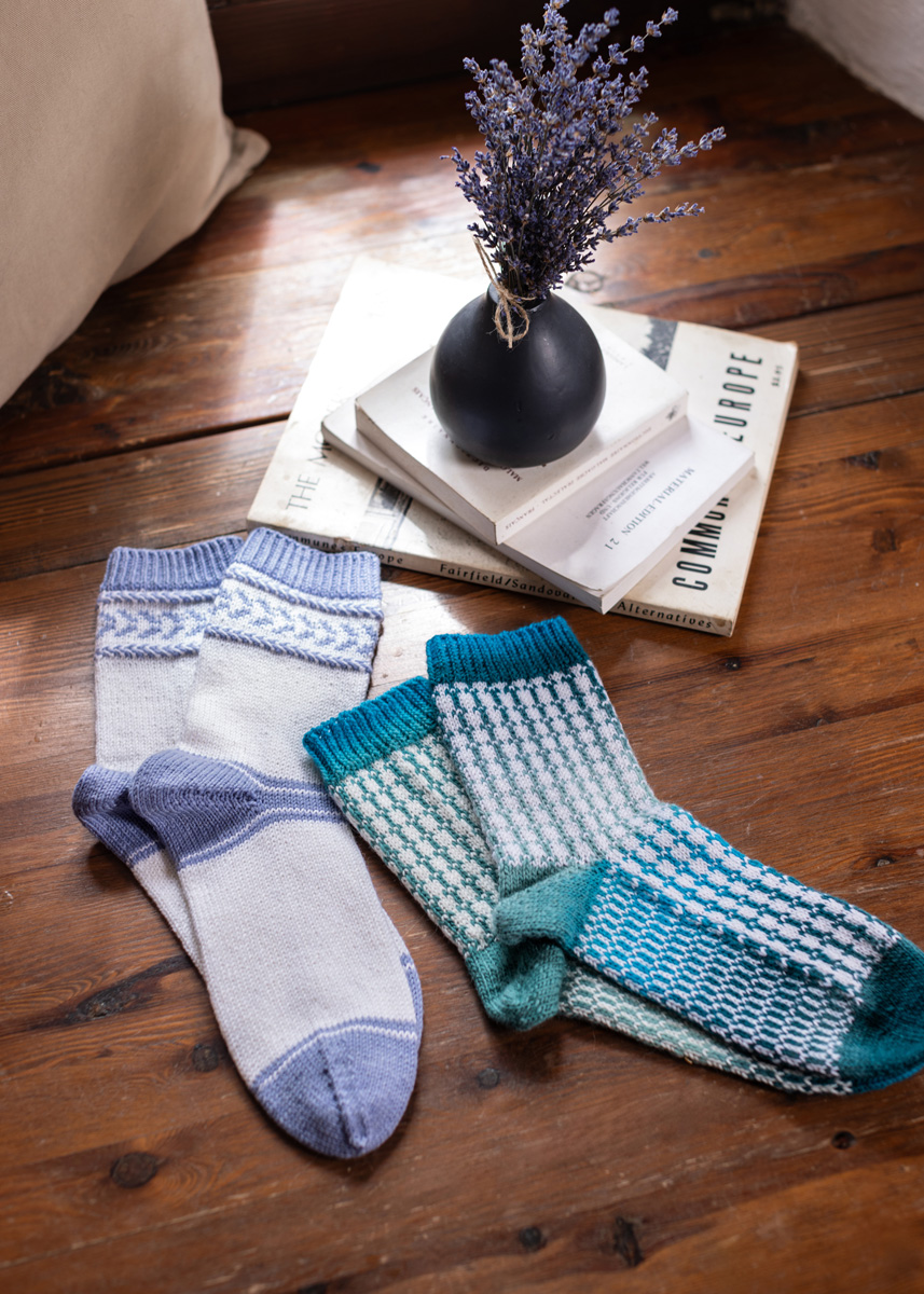 The model packages do not include any needles, buttons and accessoires, but knitting patterns are delivered by email or in printed form without extra costs.