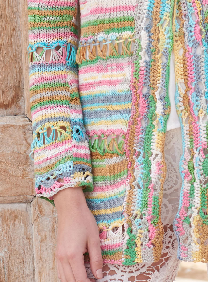 Eye-catching pattern stitches and details inform this jacket, top and pullover that will quickly become key components of your summer wardrobe. Natural fibers such as silk and cotton provide breathable comfort. Soft pastels evoke the shades of summer at the beach.