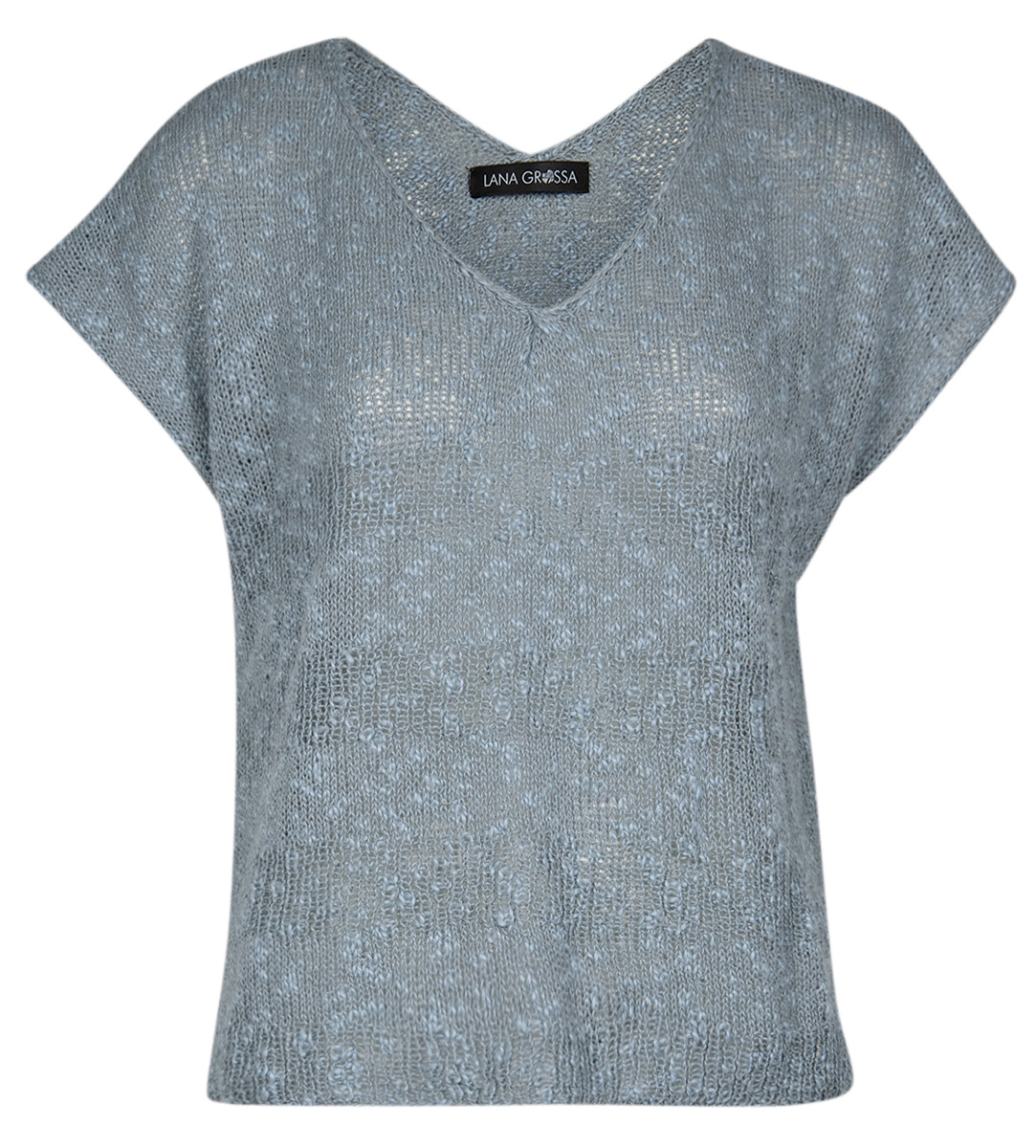 250 (300, 350) g of Lana Grossa Terra (58% recyled linen, 42% cotton; 170 m/50 g) in Grey Blue (col 3). Size 4 mm needles; cable needle [cn].