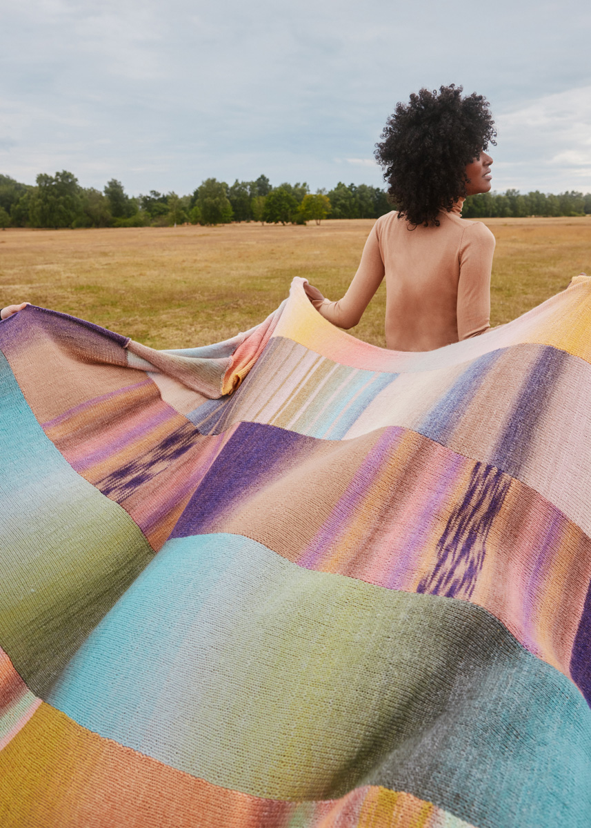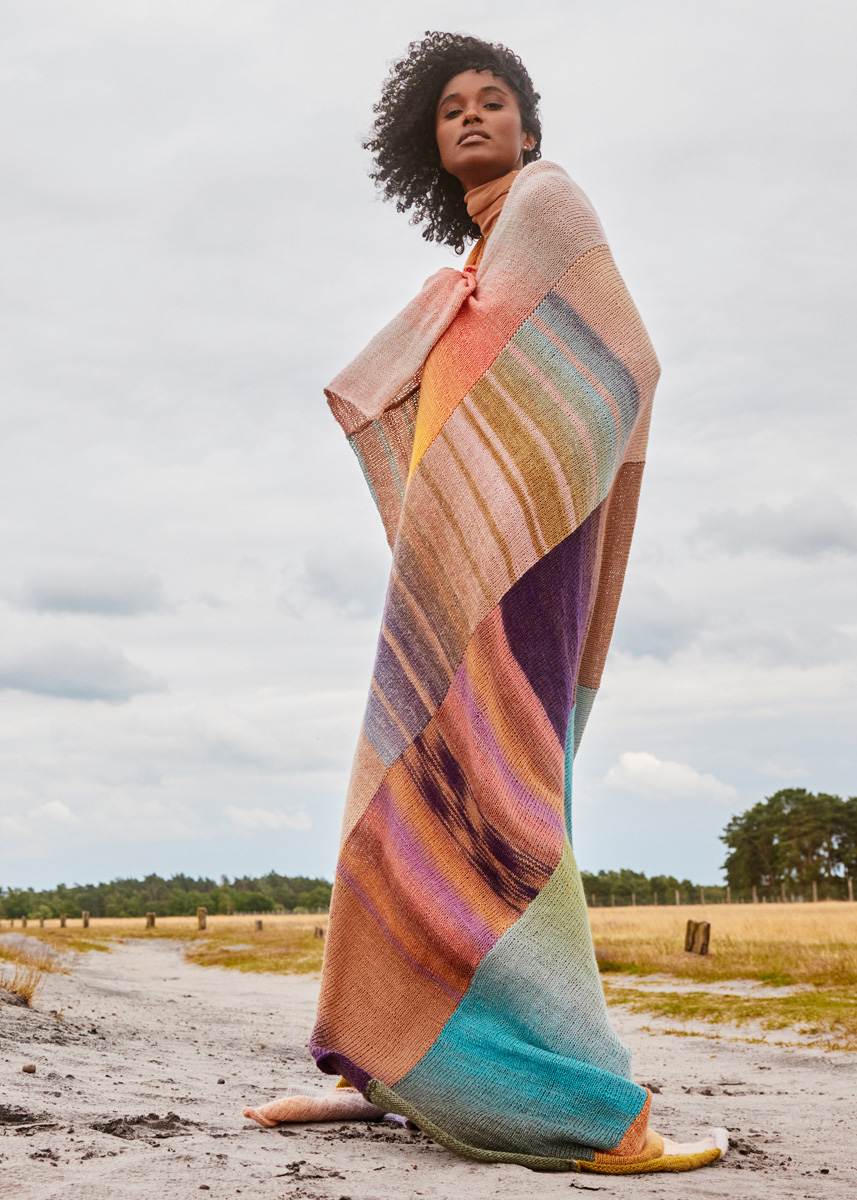 200 g each of Lana Grossa Gomitolo Dipinto (60% pure wool, 40% acrylic; 700 m/200 g) in Mint/Light Olive/Nougat/Pink/Light Brown (col 2012) and Khaki/Aubergine/ Antique Pink/Antique Violet/Grey Violet (col 2016); 200 g of Lana Grossa Gomitolo Arte (60% pure wool, 40% acrylic; 700 m/200 g) in Aubergine/Grey Blue/Olive Brown/ Mint/Pale Grey (col 1018) and 200 g each of Lana Grossa Gomitolo Versione (60% pure wool, 40% acrylic; 700 m/200 g) in Pink/Grey Beige/Violet Blue/Pastel Yellow (col 439), Pink/Salmon/Yellow/Peach/Pale Grey (col 440) and Mint/Grey Blue/Linden/Moss/Grey Green (col 442). Size 4 mm needles.
