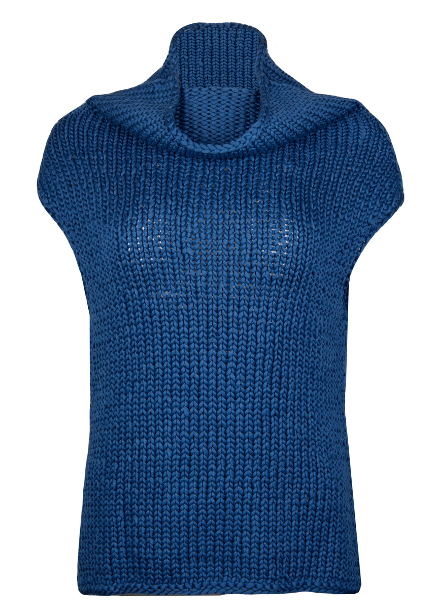 450 (500) g of Lana Grossa About Berlin Bulky (50% cotton, 50% Micromodal; 47 m/50 g) in Ink (col 4). Size 10 mm needles; size 9 and 10 mm circular needles, each 60 cm long; size 9 mm crochet hook