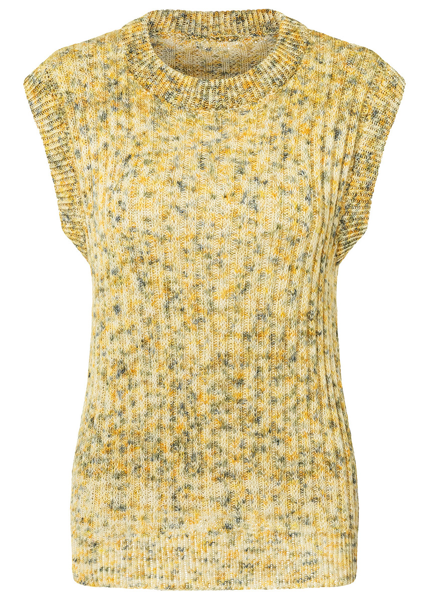 200 (250, 250) g of Lana Grossa Allora handdyed (76% cotton, 14% superfine Merino wool, 10% baby alpaca; 300 m/50 g) in Badaam (col 259). Size 3 and 4 mm needles; size 3 mm circular needle, 40 cm long; size 3.5 mm crochet hook