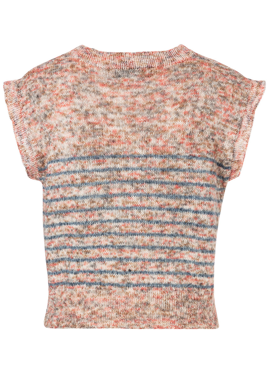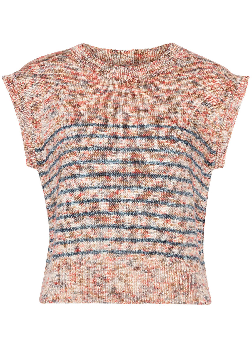 150 (200, 200) g of Lana Grossa Allora handdyed (76% cotton, 14% superfine Merino wool, 10% baby alpaca; 300 m/50 g) in Mewa (col 268) and 50 g in Ber (col 266). Size 3 and 3.5 mm needles; size 3 mm circular needle, 40 cm long