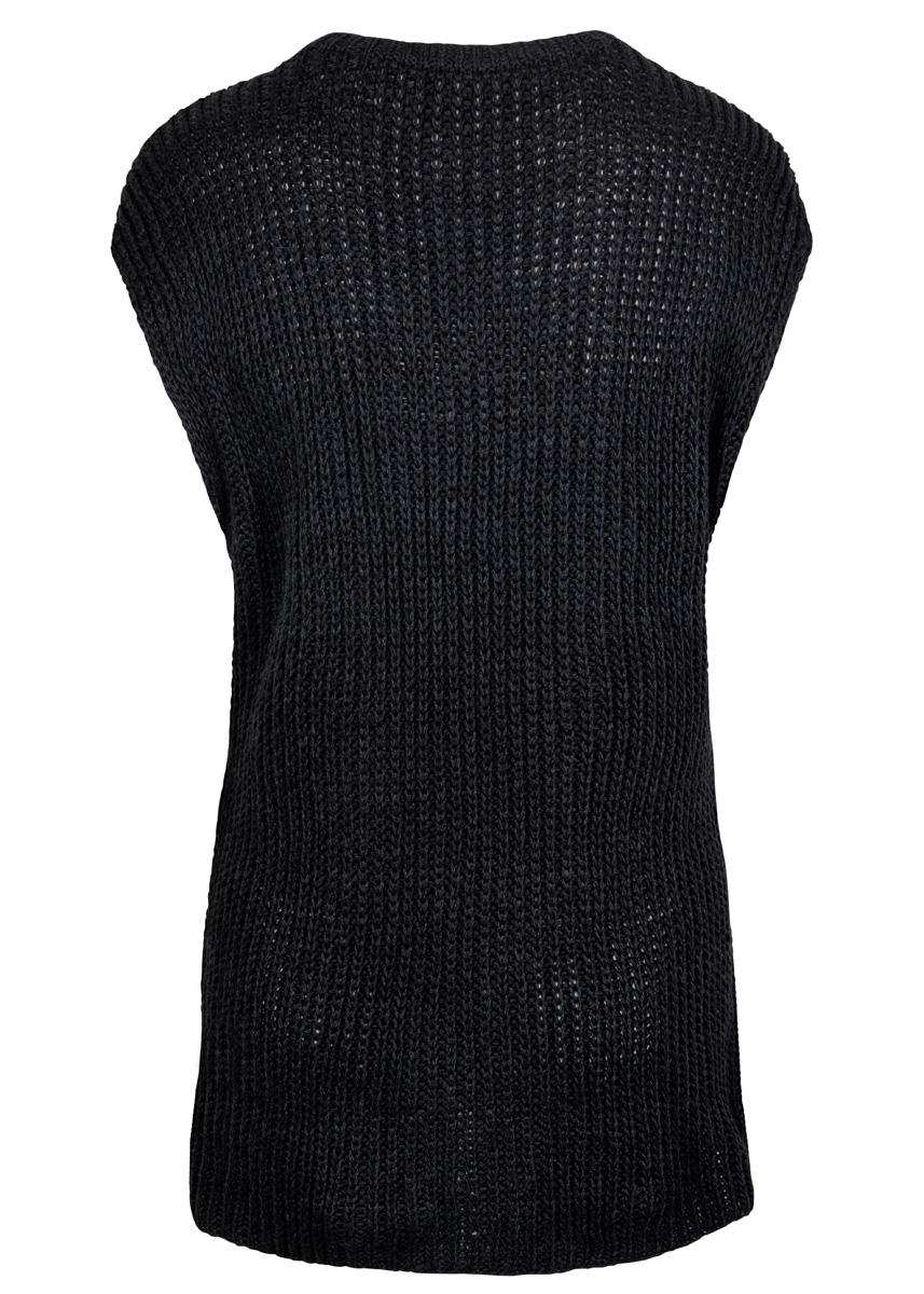 400 (450, 500) g of Lana Grossa Alta Moda Cotolana (45% Merino wool, 45% Pima cotton; 150 m/50 g) in Black (col 8). Size 4.5 mm needles; size 3.5 mm circular needle, 40 cm long