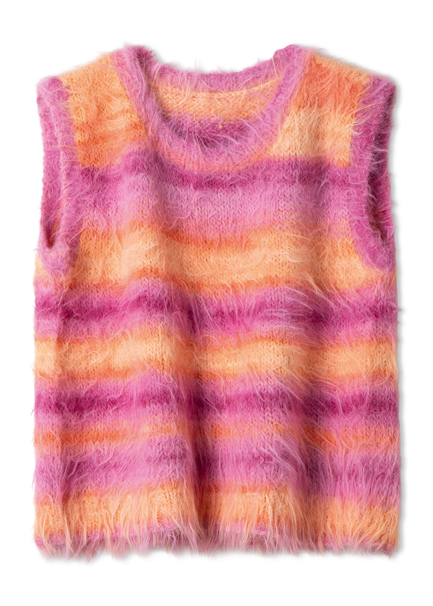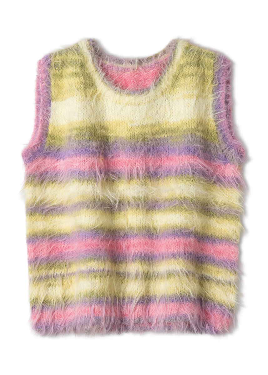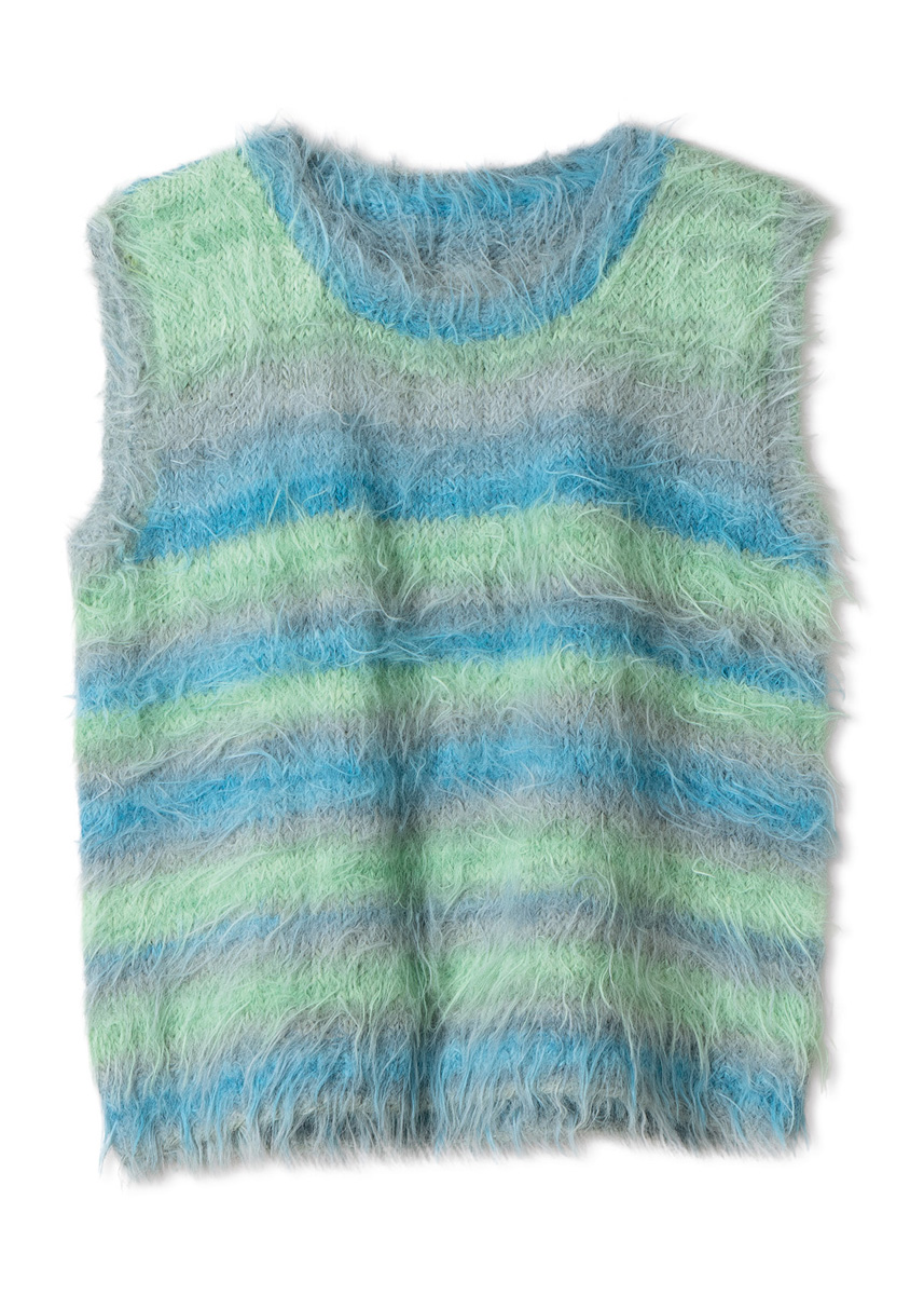 250 (250, 300, 300) g of Lana Grossa Basta Mista (50% Merino wool, 50% polyamide; 100 m/50 g) in Green Grey/Grey Blue/Light Petrol/Grey Green/Light Green (col 115) or Peach/Apricot/Orange/Rose/Pink/Fuchsia (col 111) or Cream/Vanilla/Lime/Grey Green/Pink/Lilac/Lavender (col 112). Size 4 and 6 mm circular needles; short size 4 mm circular needle.