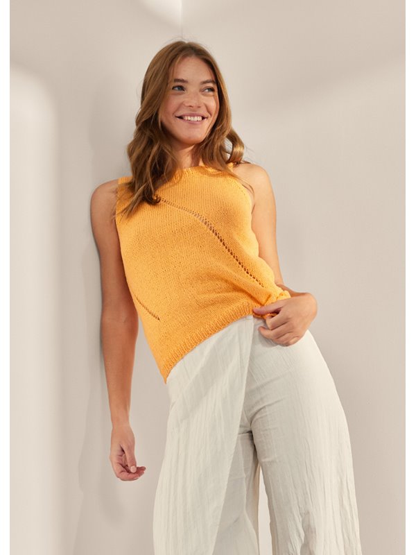 200 (250, 300) g of Lana Grossa Campo (65% cotton, 25% viscose, 10% linen; 165 m/50 g) in Orange (col 14). Size 3 and 4 mm needles; size 3 mm circular needle, 40 cm long.