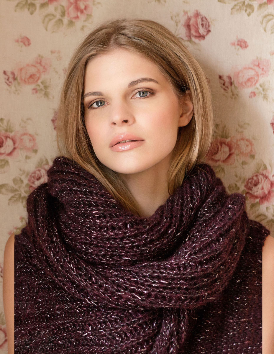 150 (200, 250) g of Lana Grossa Cometa (34% baby alpaca, 33% polyamide, 22% viscose, 6% Merino wool, 5% polyester; 130 m/50 g) in Black-Red/Silver (col 6). Size 7 and 8 mm needles; size 7 mm crochet hook