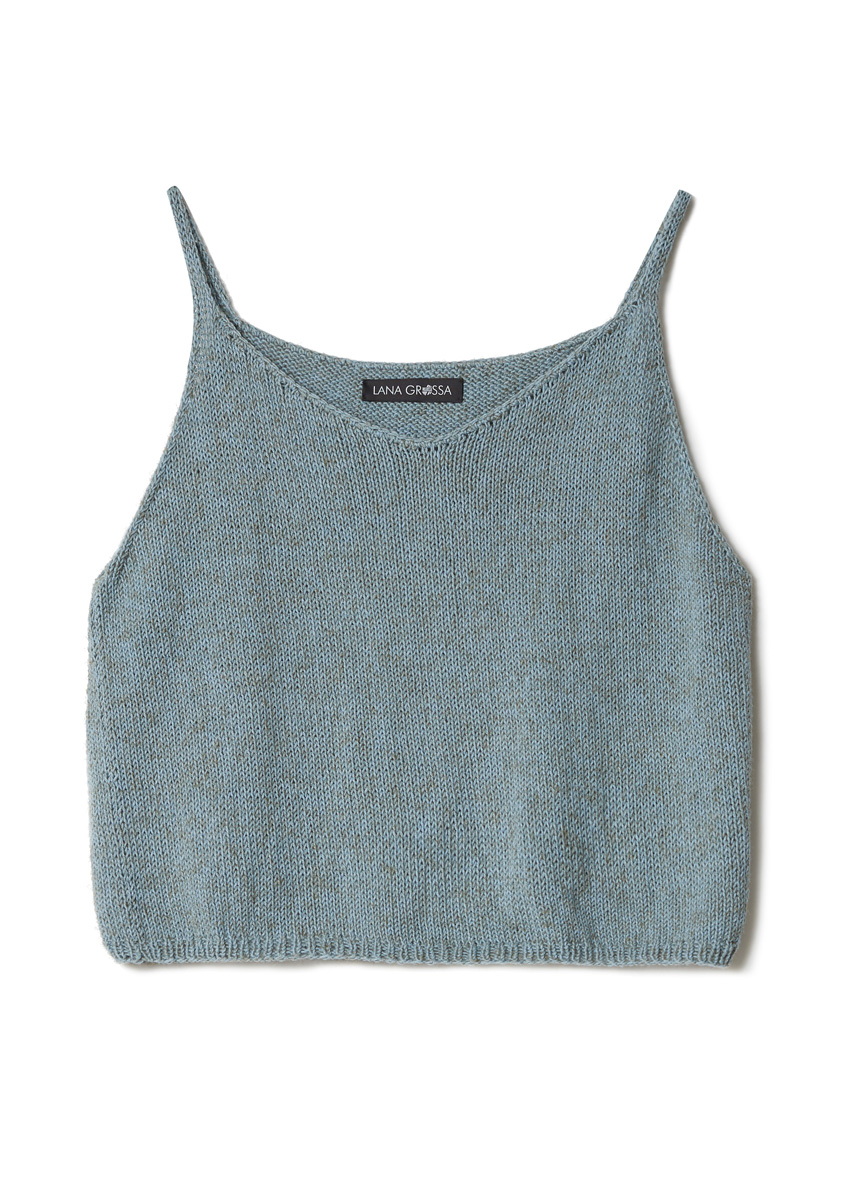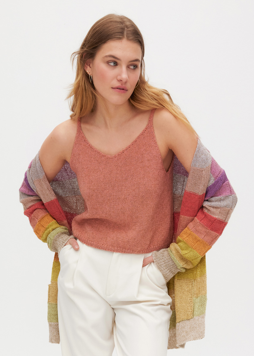 150 (150, 200) g of Lana Grossa Diversa (74% cotton, 26% viscose; 210 m/50 g) in Terracotta (col 4) or Blue Grey (col 8). Size 3 and 4 mm needles; size 3 mm crochet hook