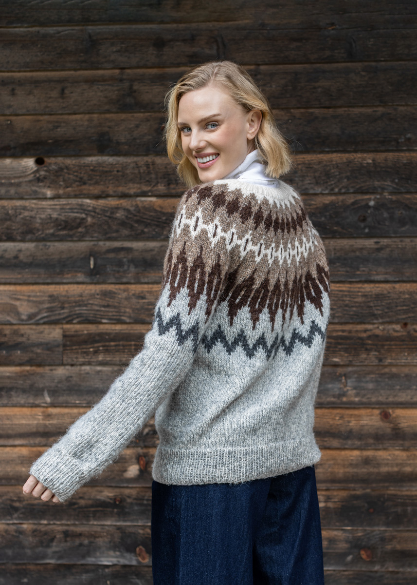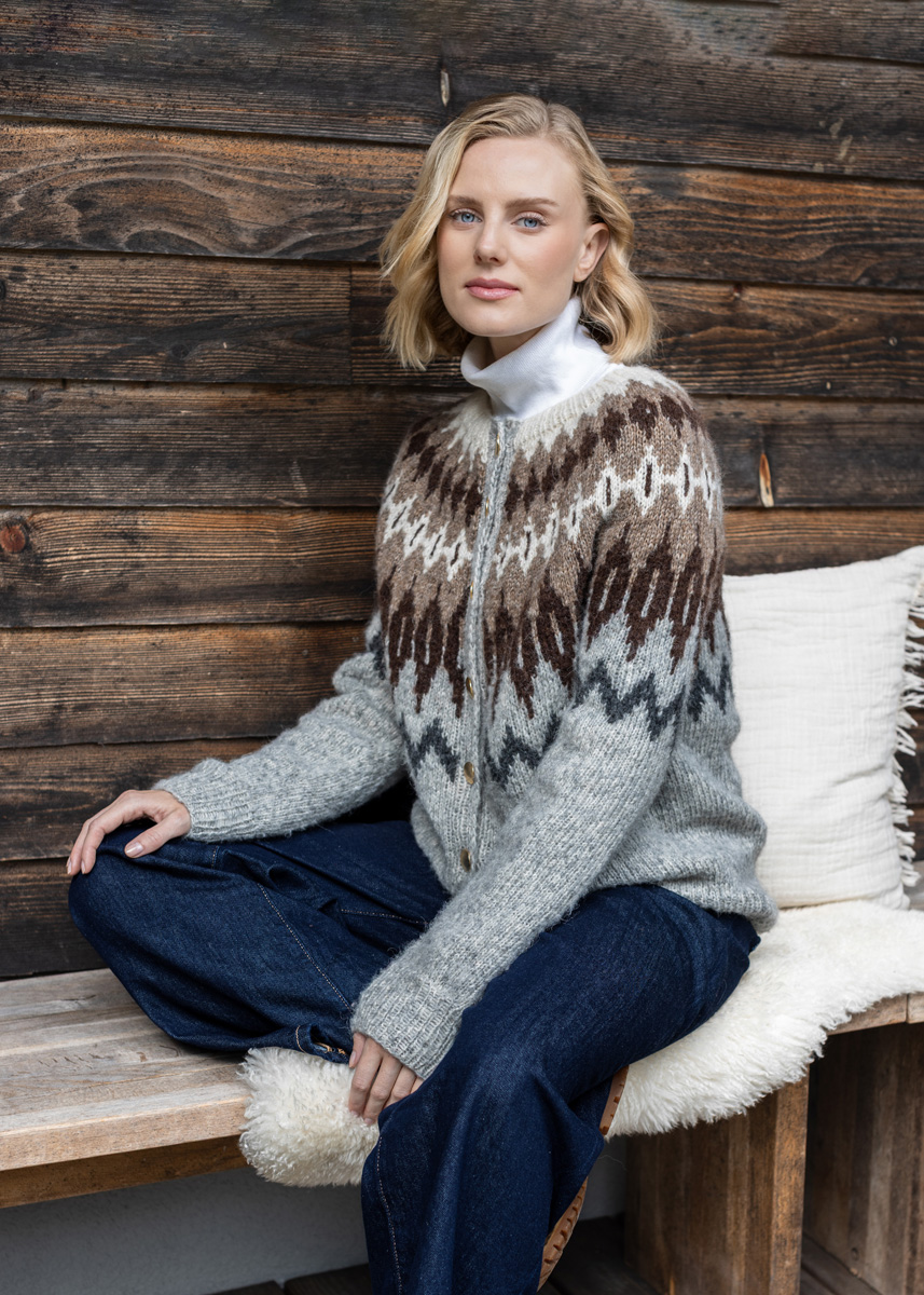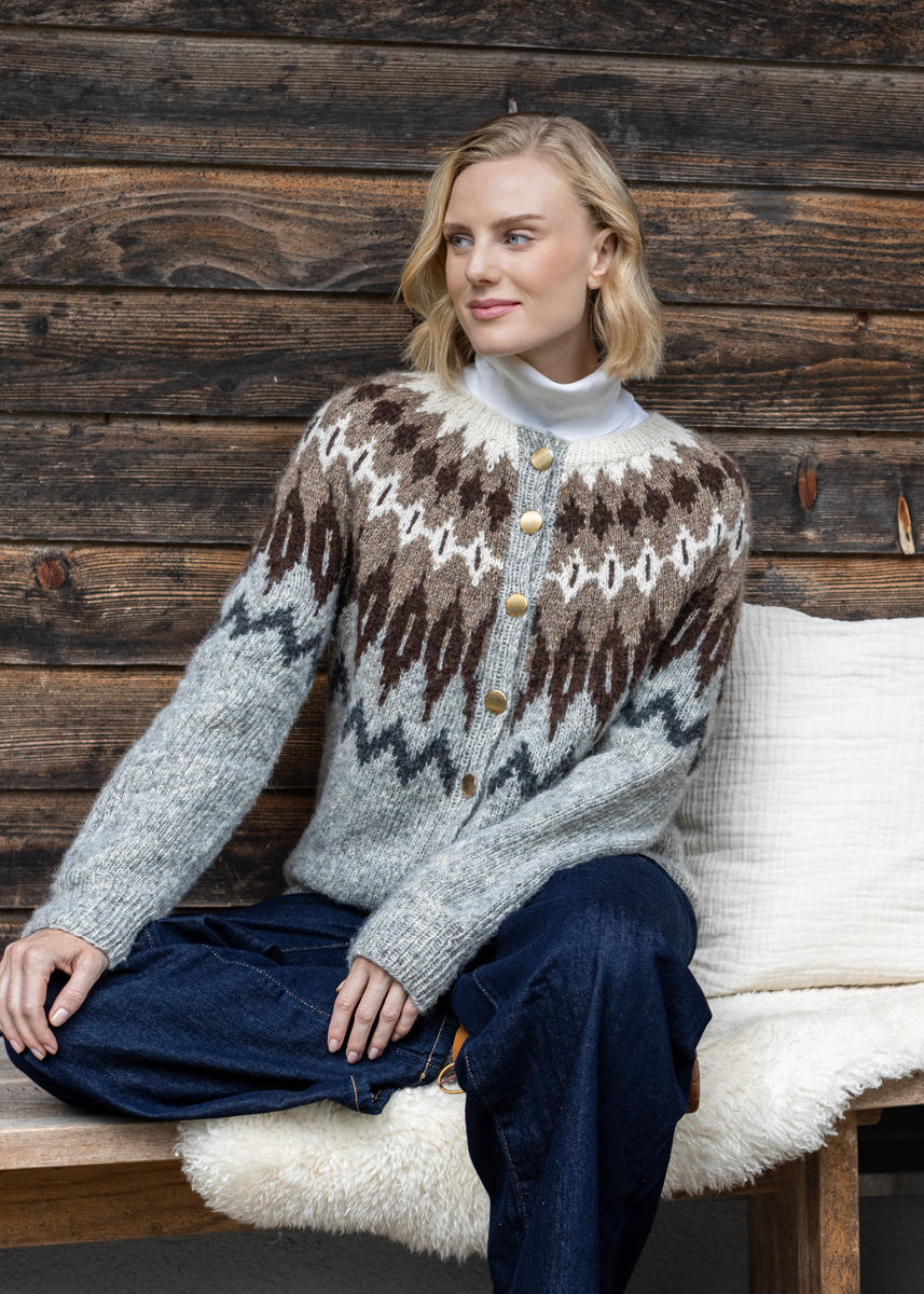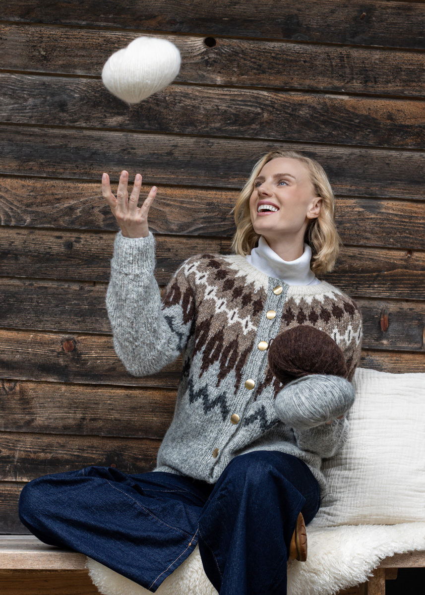 The cardigan is knitted seamlessly from the top down either in the traditional way in rows (including front bands) or as steek-version. Therefore the cardigan is knitted in the rnd throughout. Later edges are secured by crocheting along the steek-stitchesand cut open. Stitches for both front bands are picked up and the bands are knitted sideways. The cardigan has a total length of 63 (65 - 67 - 69 - 71 - 73) cm and a positive ease of 16 cm at 80 cm bust circumference (15 cm at 88 cm bust circumference - 14 cm at 96 cm bust circumference - 7 cm at 104 cm bust circumference - 4 cm at 116 cm bust circumference - 3 cm at 128 cm bust circumference).