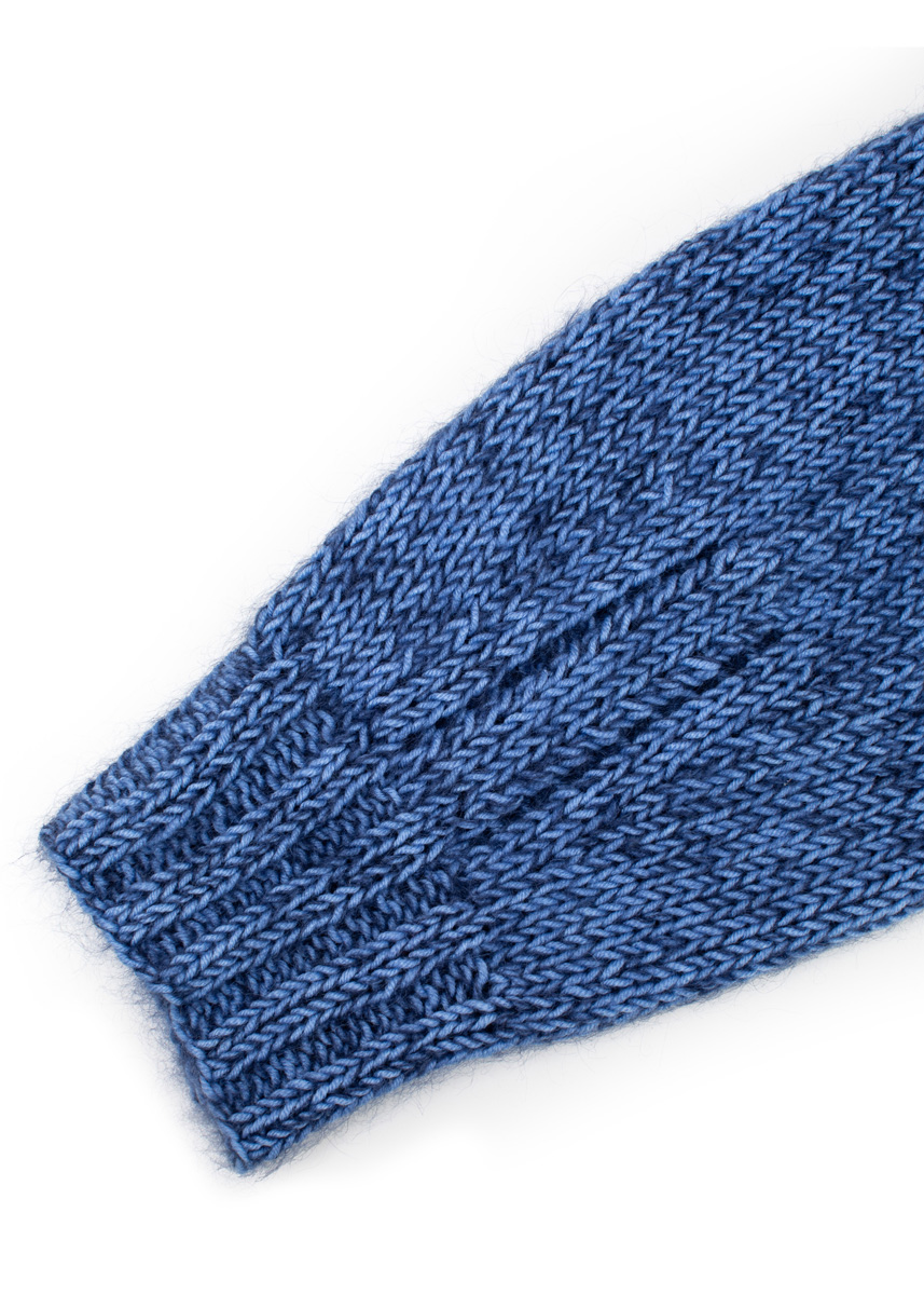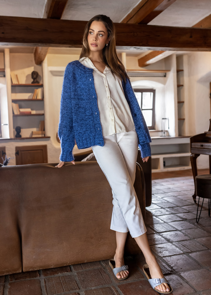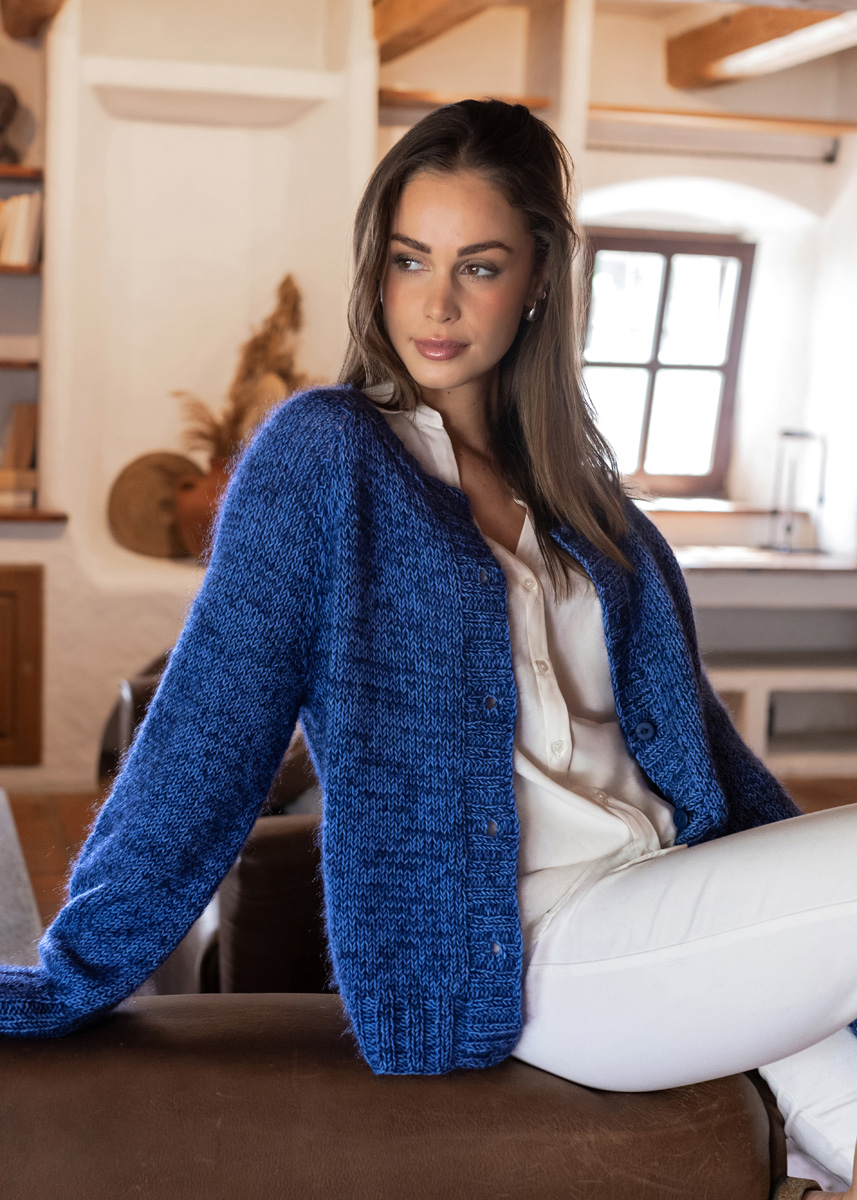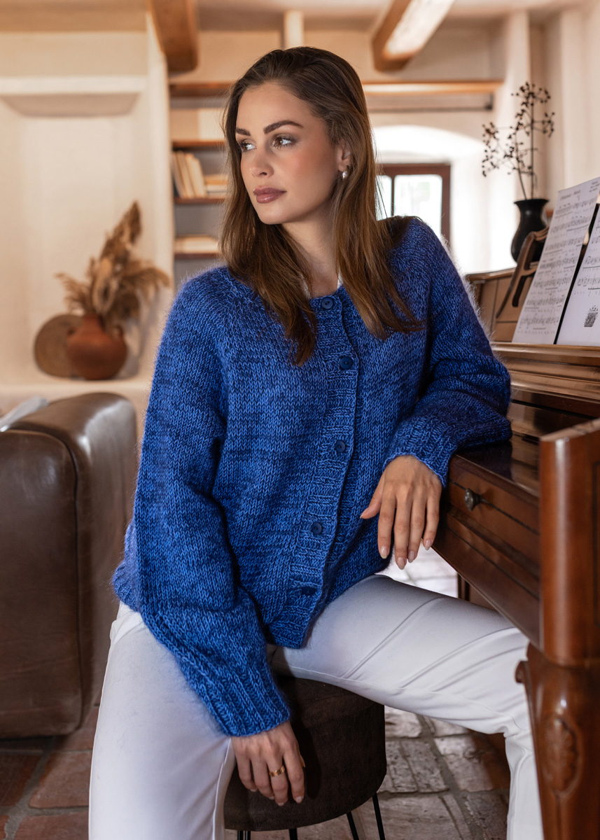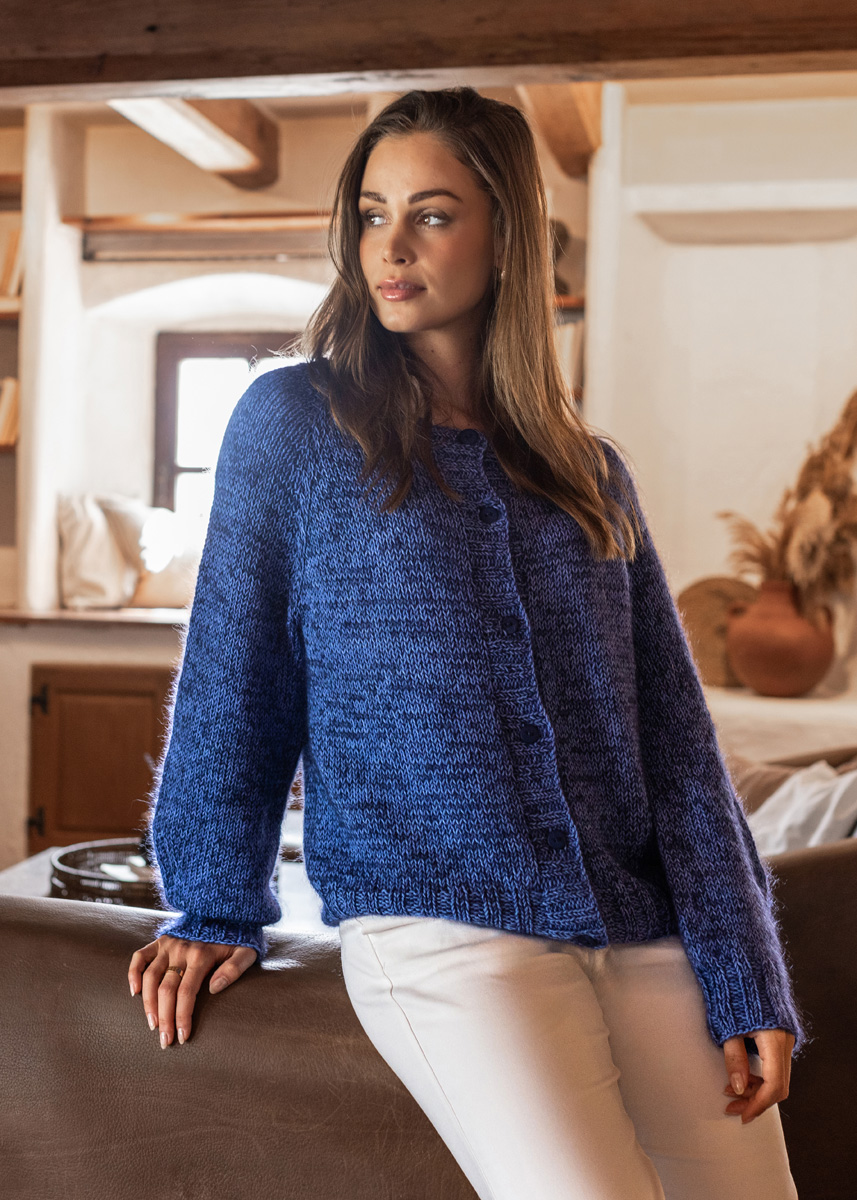 The cardigan is knitted seamlessly in one piece from top down and has a total length of 55 (57 - 59 - 61 - 63 - 66) cm and a positive ease of 18 cm at 80 cm chest circumference (18 cm at 88 cm chest circumference - 18 cm at 96 cm chest circumference - 18 cm at 104 cm chest circumference - 18 cm at 116 cm chest circumference - 14 cm at 128 cm chest circumference).