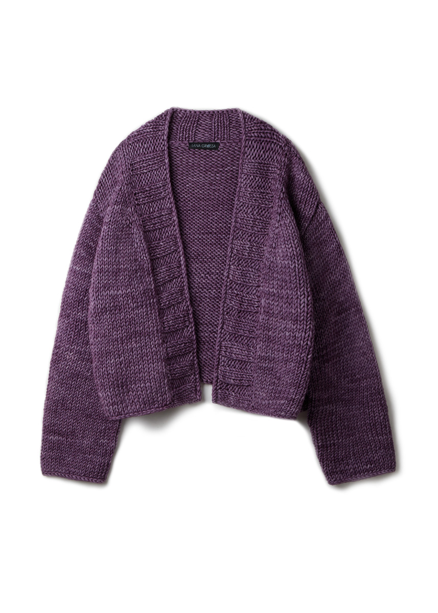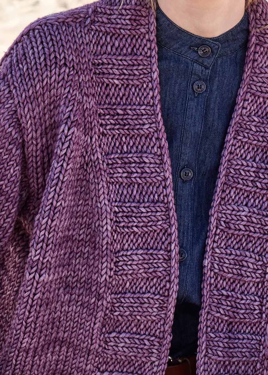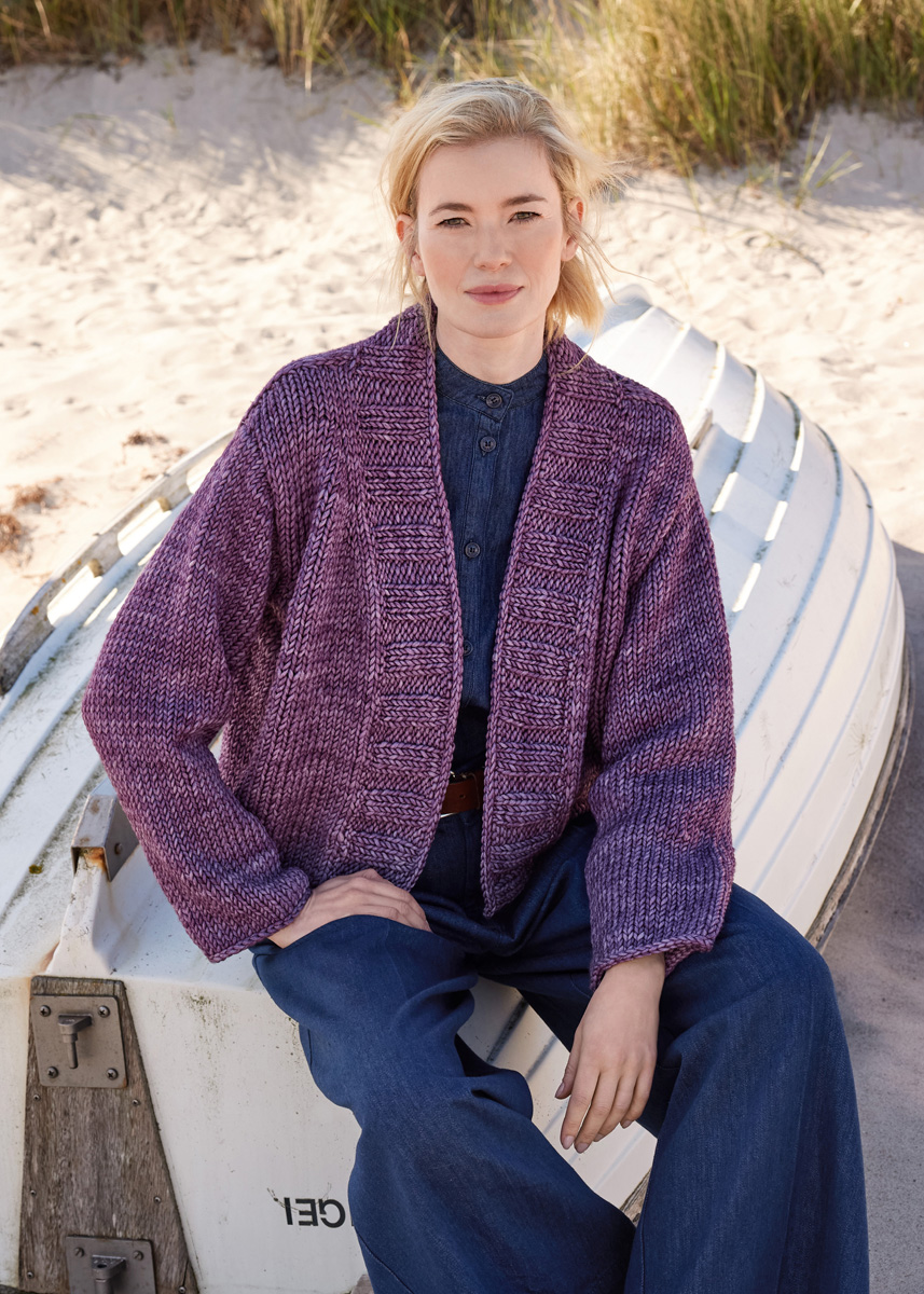 800 (900, 1000) g of Lana Grossa Vintage Superchunky (100% Merino wool; 80 m/100 g) in Antique Violet (col 515). Size 8 mm circular needles, 40, 80 and 100 – 120 cm long; size 6.5 mm circular needle, 120 cm long; size 5.5 mm crochet hook; stitch markers; stitch holders.