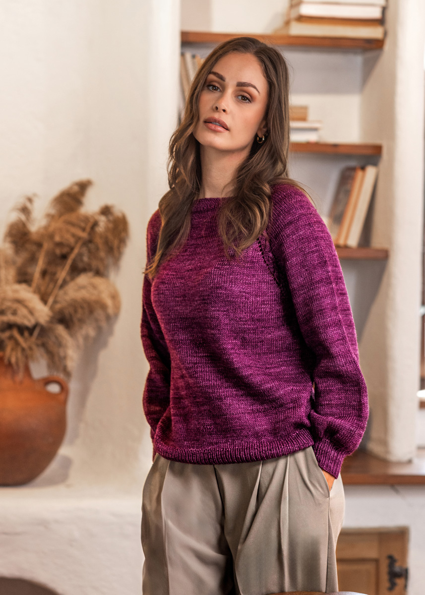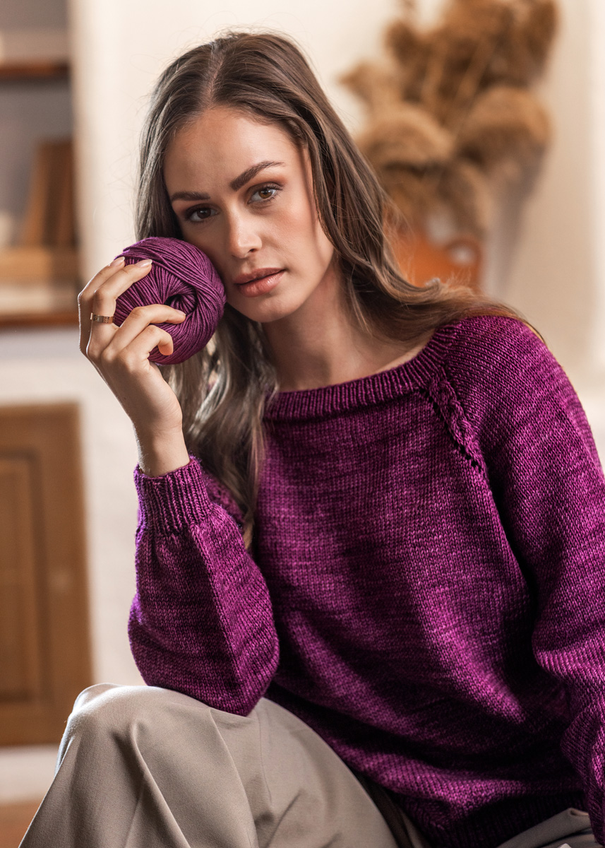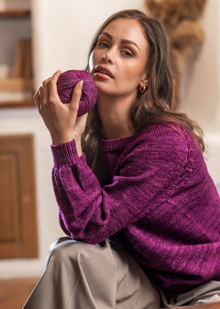 The sweater is worked seamlessly in one piece from top down and has a total length of 55 (57 - 59 - 61 - 63 - 65) cm and a positive ease of 10 cm at 80 cm chest circumference (10 cm at 88 cm chest circumference - 10 cm at 96 cm chest circumference - 10 cm at 104 cm chest circumference - 10 cm at 116 cm chest circumference - 10 cm at 128 cm chest circumference).