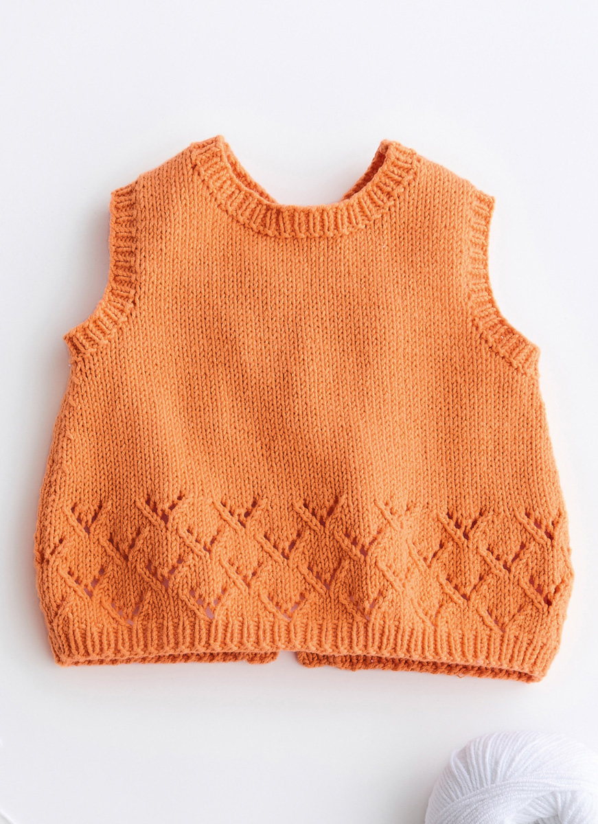 100 (100, 100, 150) g of Lana Grossa Elastico (96% cotton, 4% polyester (Elité); 160 m/50 g) in Apricot (col 158). Size 3 and 3.5 mm needles; size 3 mm circular needle, 40 cm long