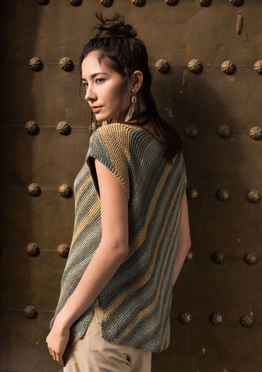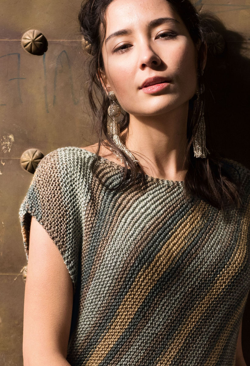 400 (450, 500) g of Lana Grossa Linarte Dégradé (40% viscose, 30% cotton, 20% linen, 10% polyamide; 125 m/50 g) in Beige/Grey-Brown/Grey-Green/Graphite (col 202). Size 5 mm needles