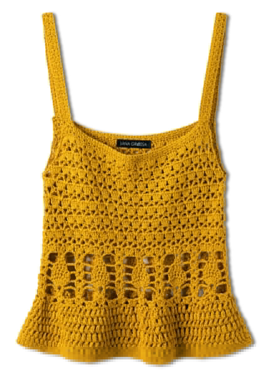 250 g of Lana Grossa Organico (100% organic cotton; 90 m/50 g) in Corn Yellow (col 119). Size 4.5 mm crochet hook.