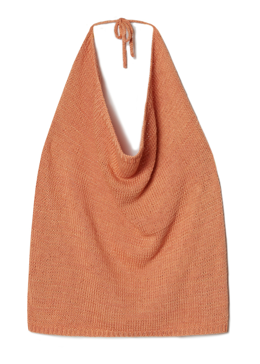 200 (250) g of Lana Grossa Solo Lino (80% recycled linen [viscose], 20% linen; 120 m/50 g) in Salmon (col 63). Size 3.5 mm circular needle, 80 cm long; 2 size 3.5 mm double-pointed needles [dpns].