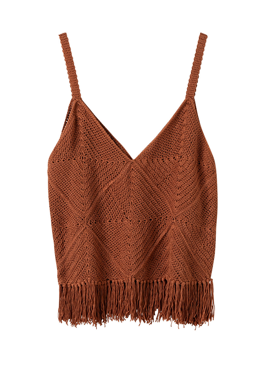 350 g of Lana Grossa Solo Lino (80% recycled linen [viscose], 20% linen; 120 m/50 g) in Cinnamon (col 26). Size 3 and 3.5 mm crochet hook.