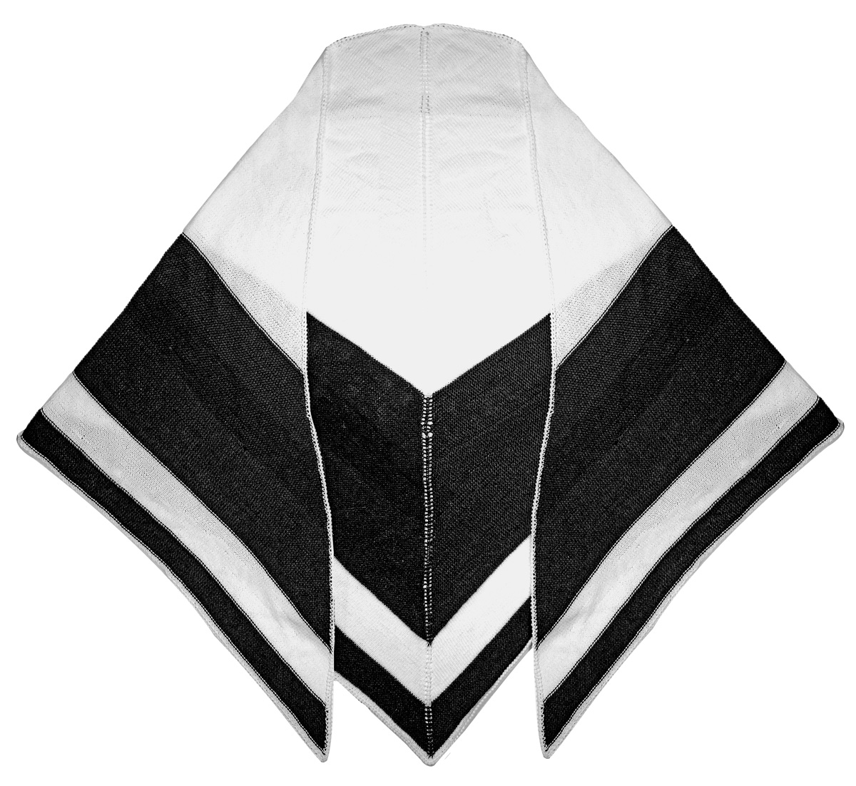 250 g of Lana Grossa Cashair (60% cotton, 30% nylon, 10% cashmere; 225 m/50 g) in Black (col 8) and 200 g in White (col 16). Size 4 mm circular needle, 80 – 120 cm long; size 4 mm crochet hook