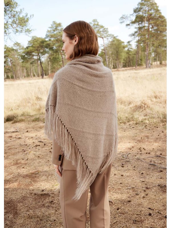 250 g of Lana Grossa Ecopuno (72% cotton, 17% Merino wool, 11% baby alpaca; 215 m/50 g) in Linen (col 222) and 125 g of Lana Grossa Silkhair (70% superkid mohair, 30% silk; 210 m/25 g) in Pearl Beige (col 123). Size 5.5 mm circular needle, 120 cm long; size 5 mm crochet hook.
