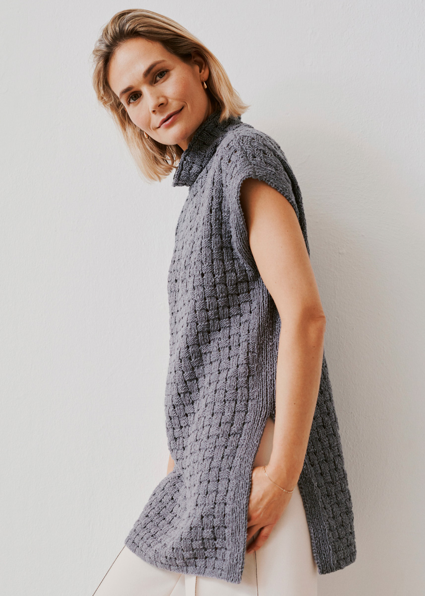 450 (500, 550) g of Lana Grossa Bacca (100% cotton; 120 m/50 g) in Dark Grey (col 13). Size 3.5 and 4 mm needles; size 4 mm circular needle, 40 cm long
