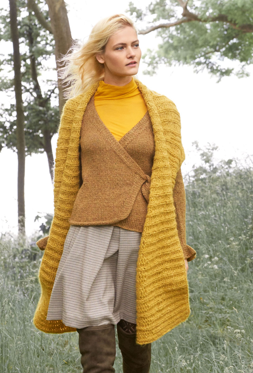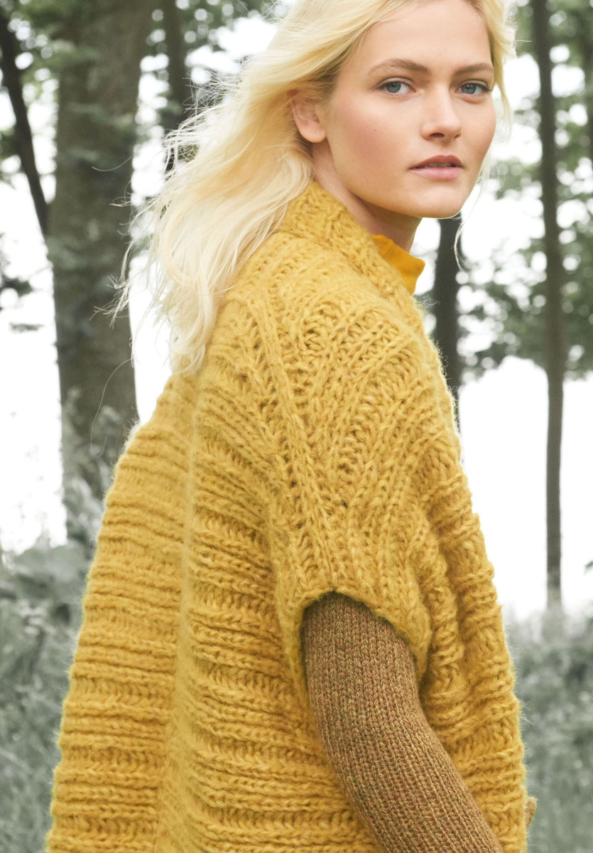 500 g of Lana Grossa Cloud (80% alpaca, 14% Merino wool, 6% polyamide; 80 m/50 g) in Honey (col 5). Size 7 mm circular needle, 100 cm long; size 7 mm crochet hook.