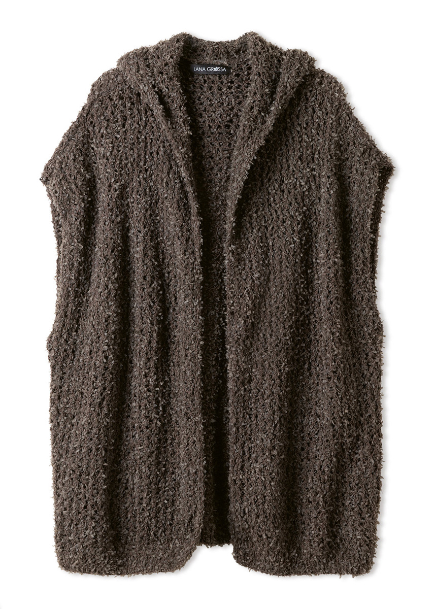 400 (450, 500, 550) g of Lana Grossa Frizzante (54% cotton, 46% polyamide; 105 m/50 g) in Mocha (col 4).