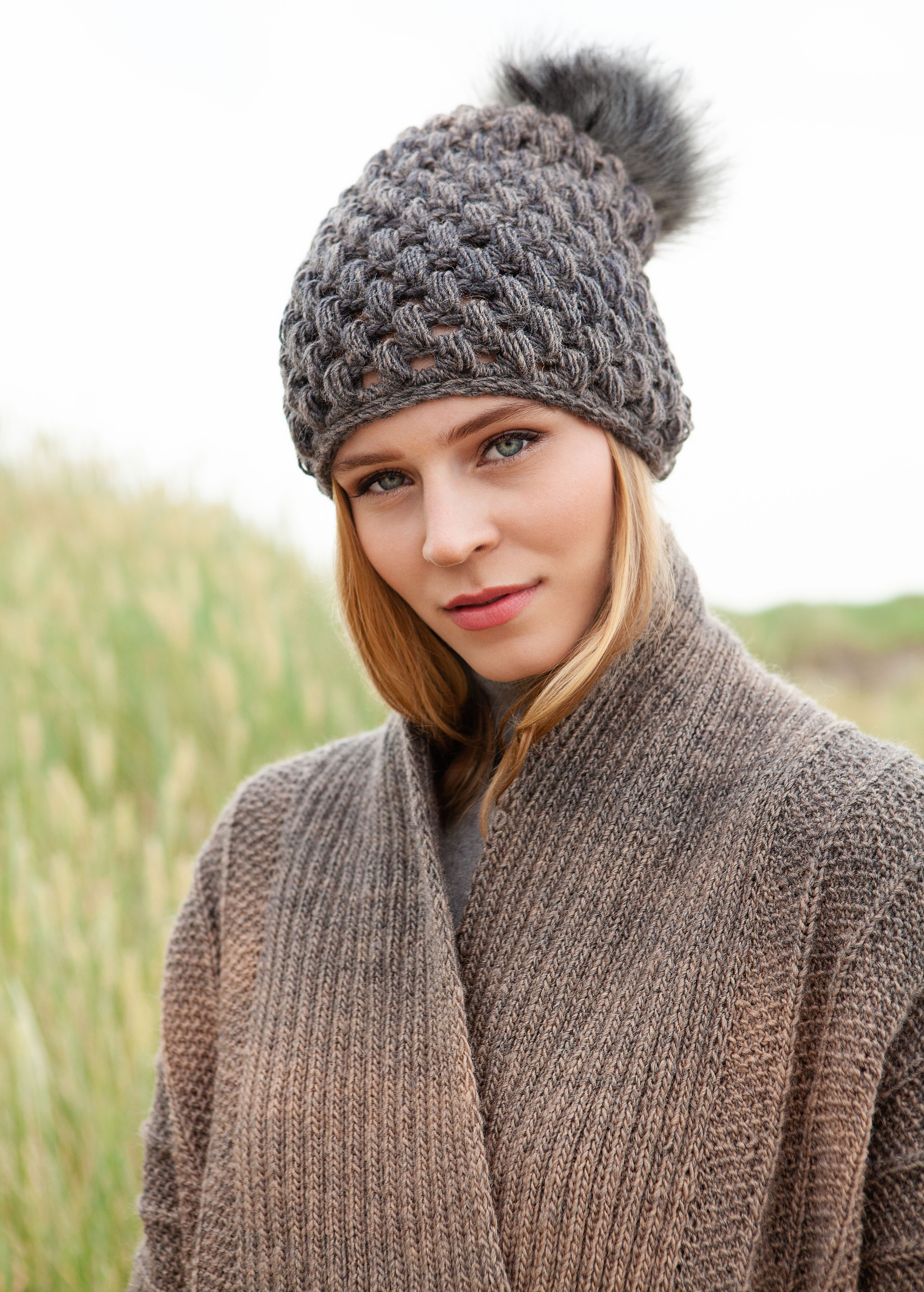 600 (600, 800) g of Lana Grossa Gomitolo 200 Dégradé (50% pure wool, 50% acrylic; 700 m/200 g) in Taupe/Brown (col 304). Size 3.5 and 4 mm needles