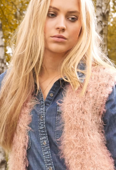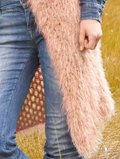 RELEASE YOUR INNER hippie with this dramatic longline vest. The fur-like texture of the yarn gives it high fashion impact.