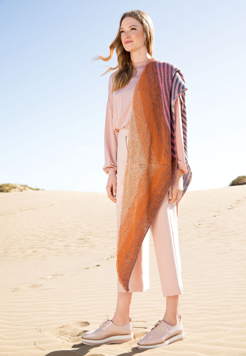 200 g each of Lana Grossa Shades of Merino Cotton (50% extrafine Merino wool, 50% cotton; 760 m/200 g) in Antique Pink/Greige/Umbra/Dark Brown (col 410) and Sand/Orange/Khaki/Dark Grey (col 609). Size 4.5 mm crochet hook