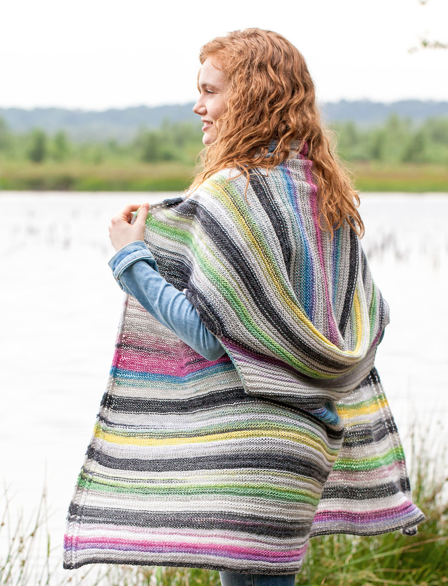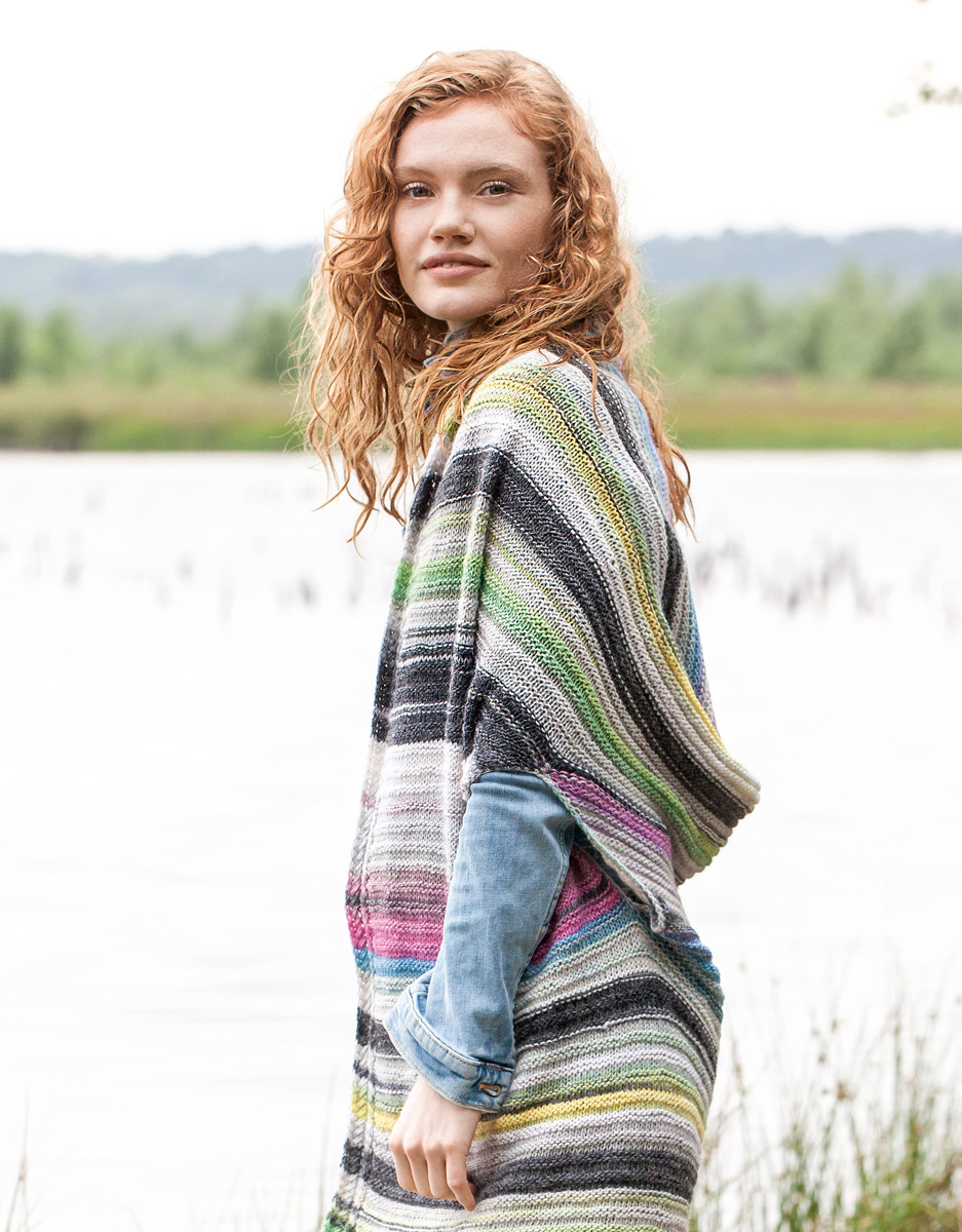 400 (600) g of Lana Grossa Gomitolo Versione (60% pure wool, 40% acrylic; 700 m/200 g) in Silver/Light-/ Medium-/Dark Grey (col 413). Size 5 mm circular needle, 100 cm long; cable needle [cn]; size 4 mm crochet hook