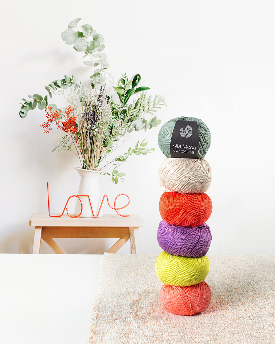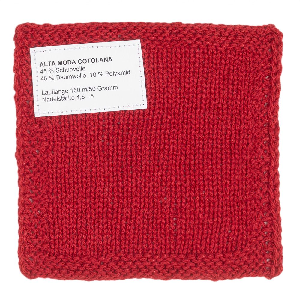 Alta Moda Cotolana is a modern all-season yarn with a pleasantly lightweight feel and soft touch. The premium blend of cotton, virgin wool, and polyamide combines natural freshness with cozy warmth—perfect for garments that can be worn in spring as well as in autumn and winter. Its innovative chain structure provides volume with minimal weight and creates a clean, even stitch pattern.