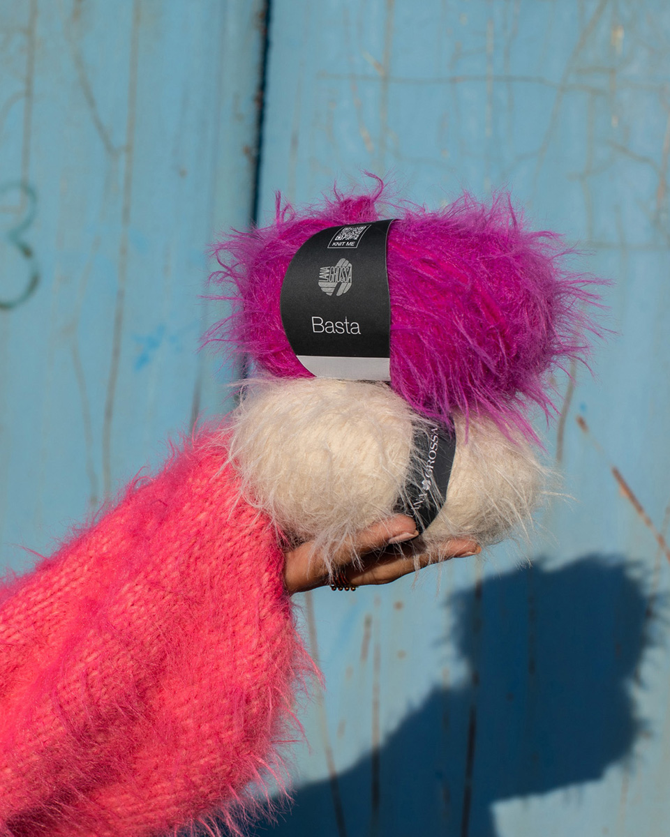 Basta is an exceptional yarn with a trendy faux-fur look. The combination of soft merino wool and lightweight polyamide gives the yarn a cozy touch and a fluffy appearance. The fringe effect adds a hint of extravagance. Perfect for fashionable jackets, vests, scarves, or statement pieces that stand out with texture and volume – ideal for creative knitting projects with a wow factor.