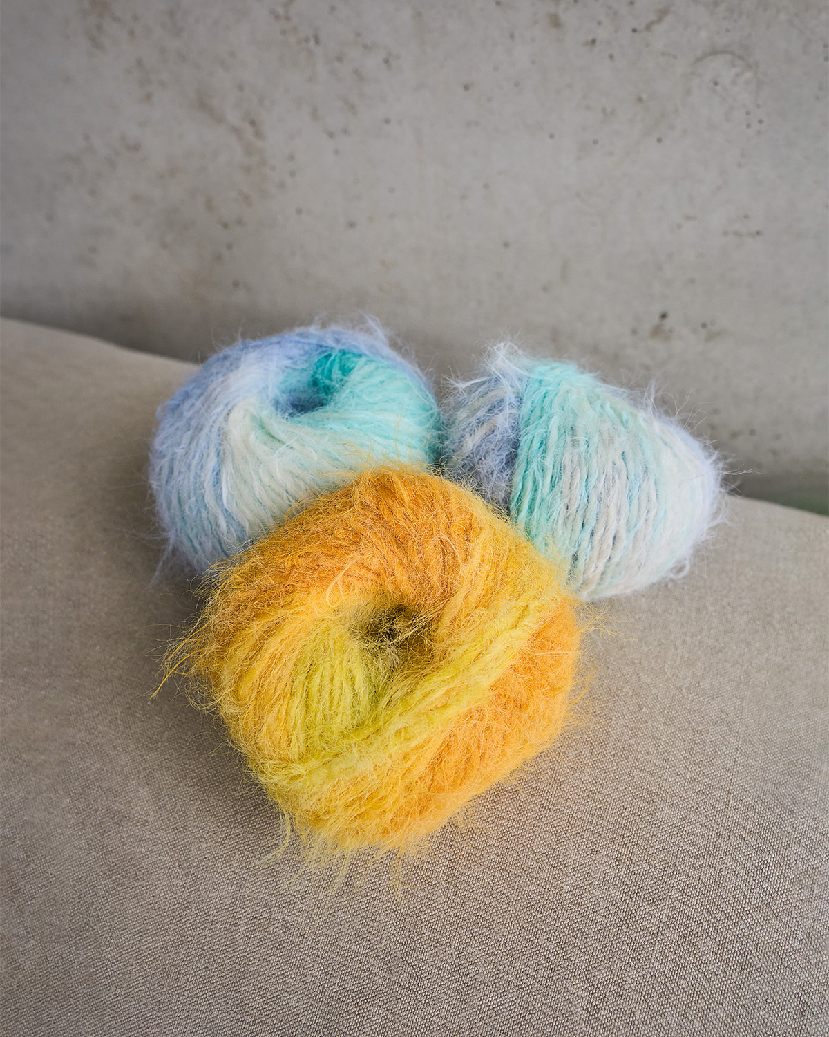 Yarn with a fake fur look and exciting color progressions.