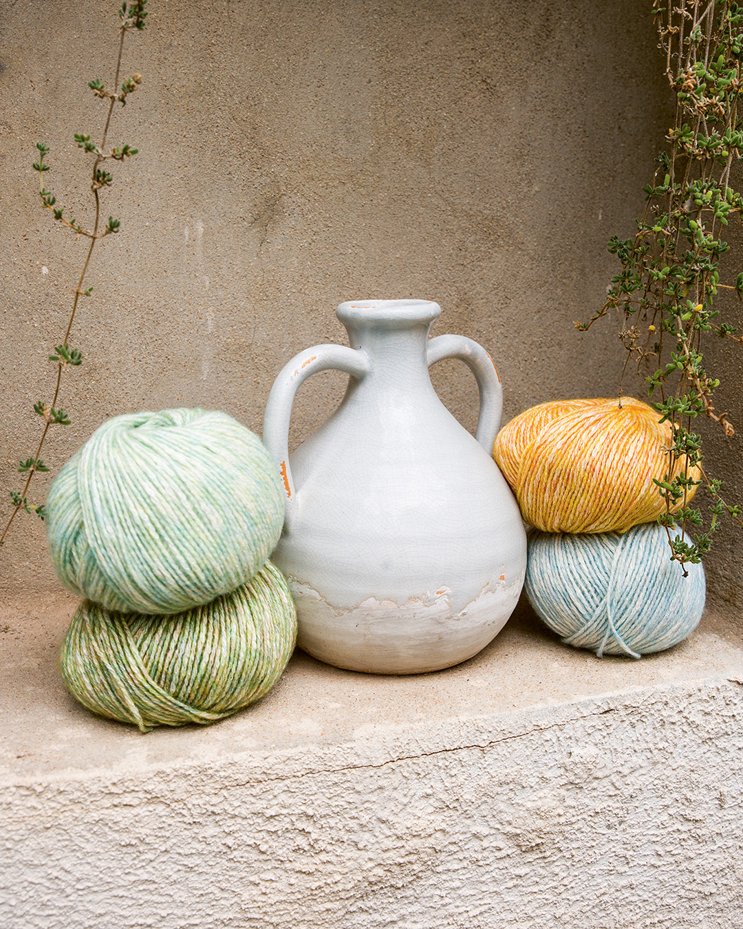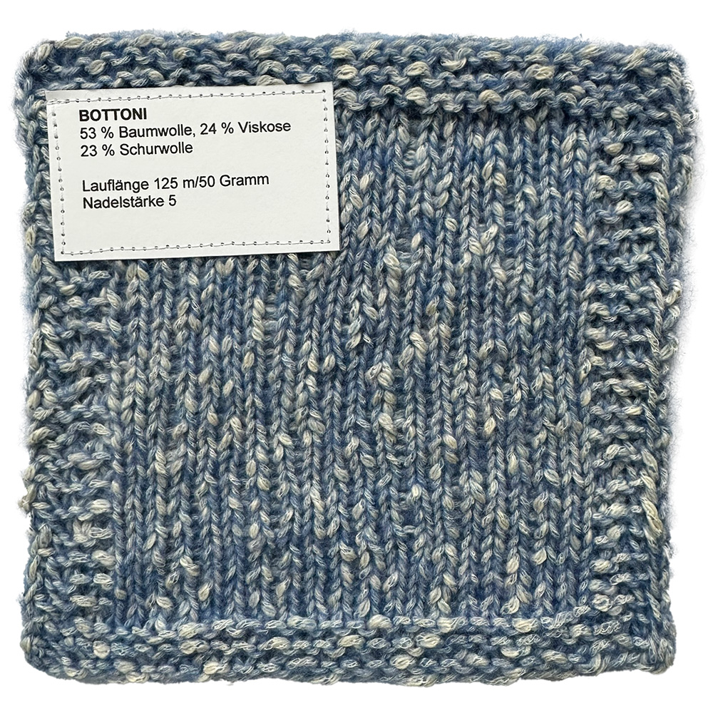 Bottoni has a unique character: at its core, it combines a soft cotton-viscose blend, wrapped in a delicate layer of fine merino fibers. Scattered neps add playful accents, giving the yarn its distinctive, lively look.