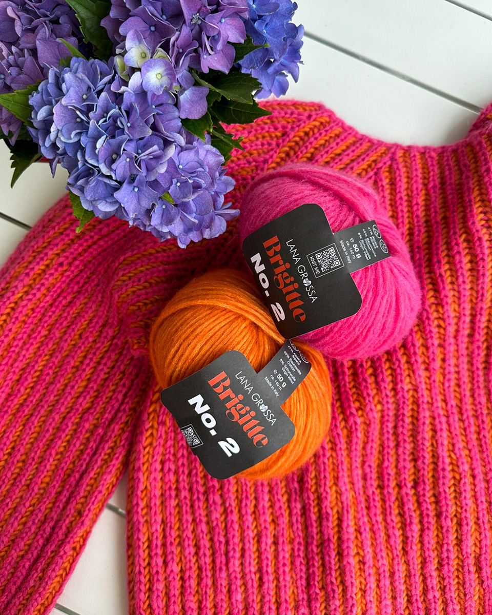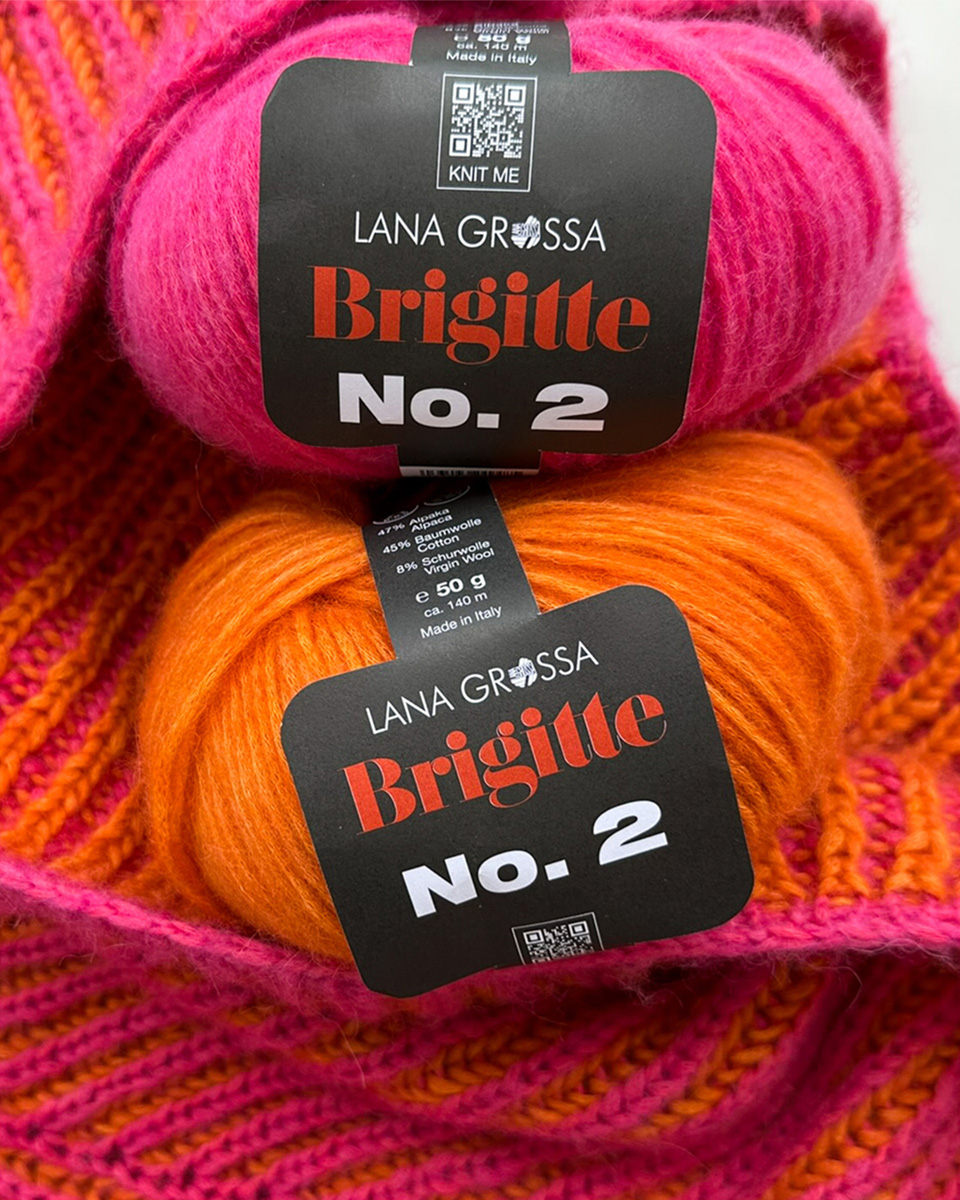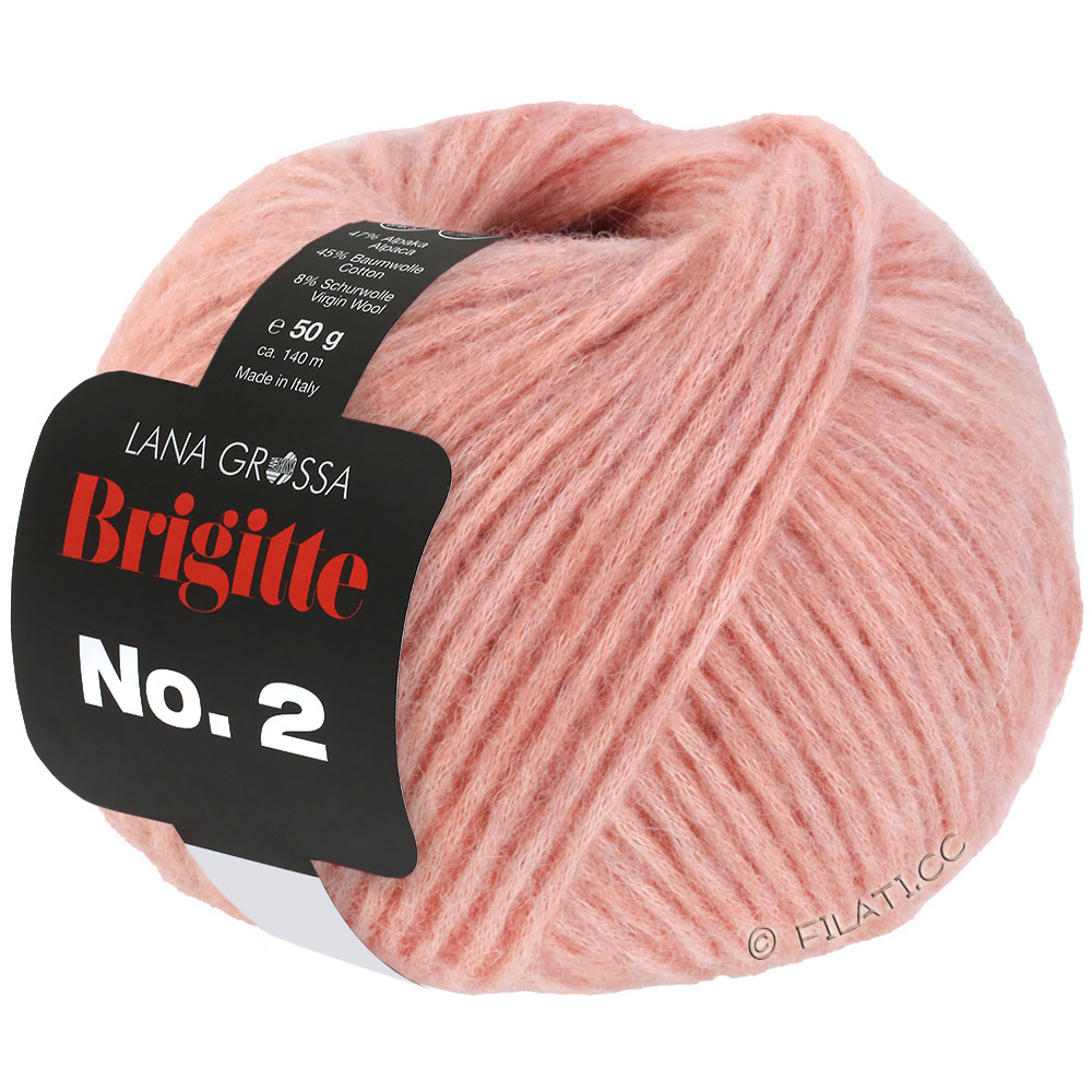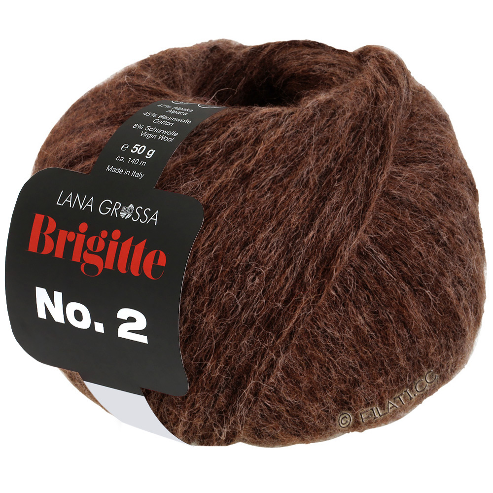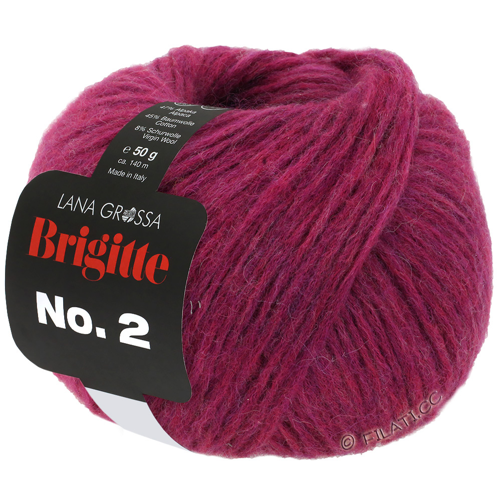 Brigitte No. 2 is an elegant, voluminous yarn with a light fluff and modern character, developed in collaboration with BRIGITTE magazine. The high-quality blend of alpaca, merino wool, and cotton provides a soft touch, cozy warmth, and stylish texture effects.Ideal for sweaters, jackets, scarves, and fashionable accessories that impress with their lightness and trendy stitch pattern.