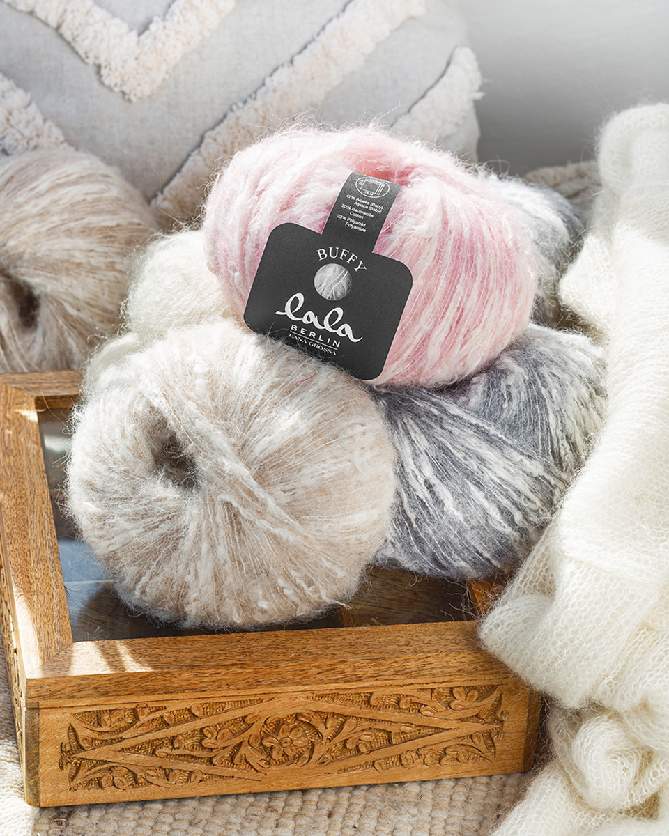 Lana Grossa Buffy – Lala Berlin Edition impresses with its cuddly soft, voluminous yarn, perfect for trendy knitting projects. The modern blend provides both lightness and warmth.