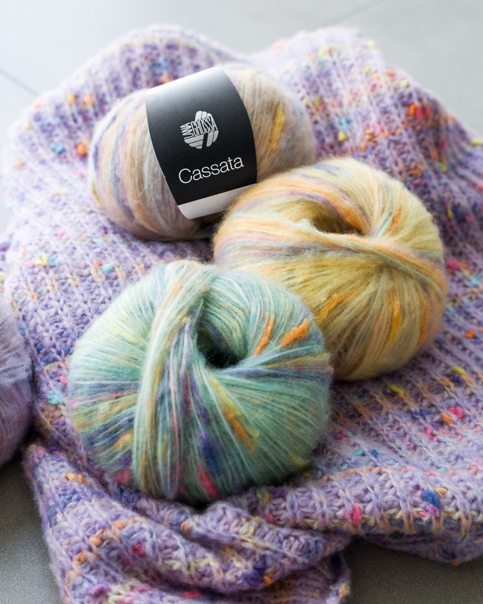 With Cassata, Lana Grossa brings a yarn to the needles that perfectly combines lightness, volume, and color. The blend of cotton and virgin wool ensures a wonderfully soft feel and a light stitch pattern with a modern character.