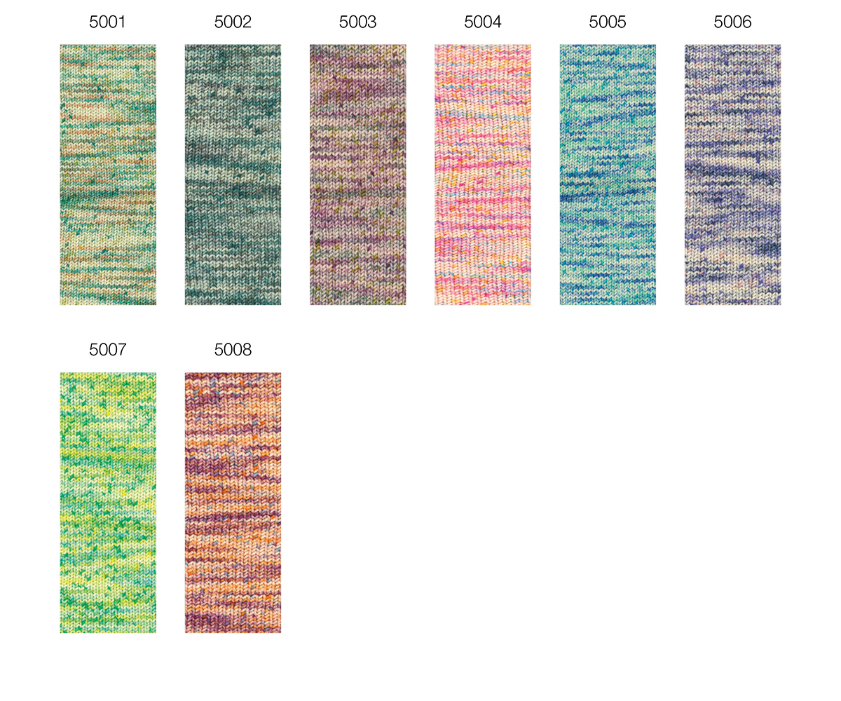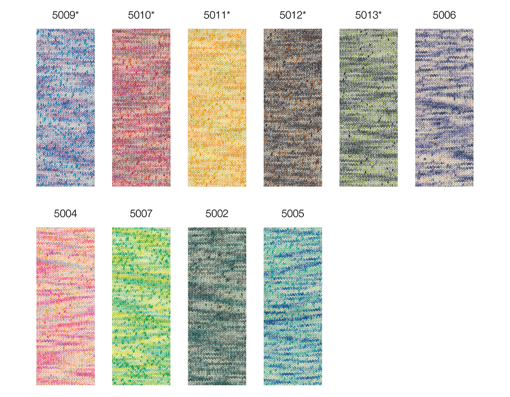 Cool Wool Spots adds a fresh twist to the popular Cool Wool collection: this 100% fine merino yarn impresses with its soft, smooth texture, while the scattered color speckles create a lively, playful stitch pattern—no color changes required.